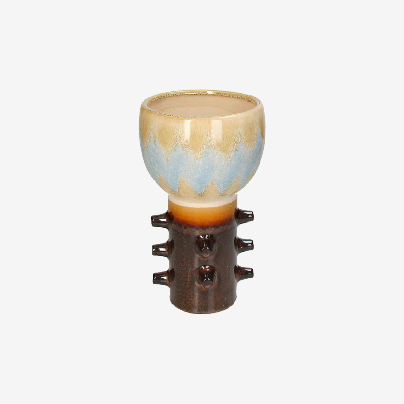 Bijzonder gevormde pot gemaakt van keramiek. In hoogglans afgewerkt.
