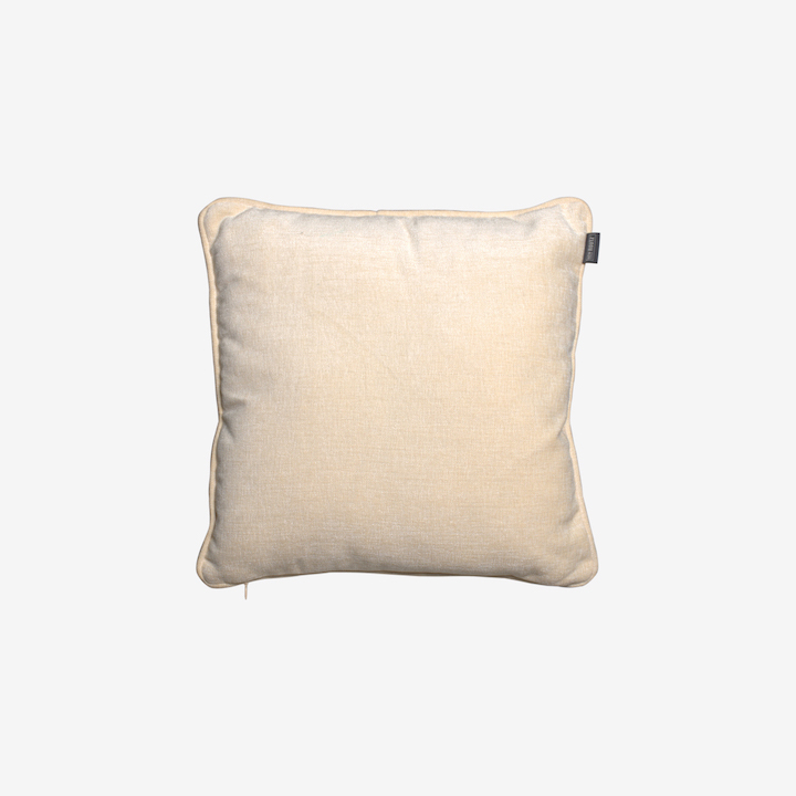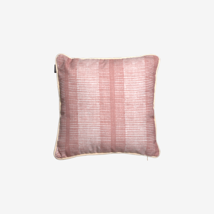 Geborduurd kussen met gestreept, roze koraalmotief en een zachte crème kleurige achterkant
