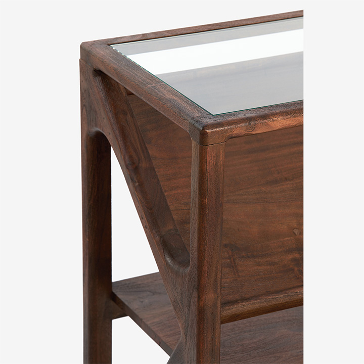 De Isak console is een elegante toevoeging aan je interieur. Het ontwerp met het oplopende onderblad zorgt niet alleen voor een niet alledaagse vorm maar biedt ook praktische opbergruimte voor boeken of tijdschriften. In deze serie is ook een bijpassende salontafel leverbaar.