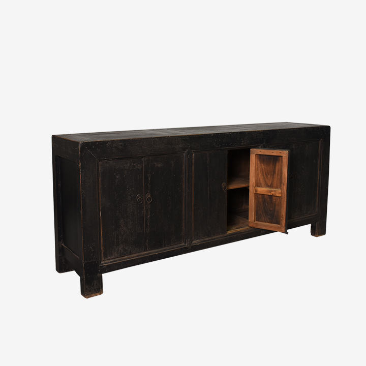 Chinees dressoir afgewerkt in de bijzondere mat zwarte finish.