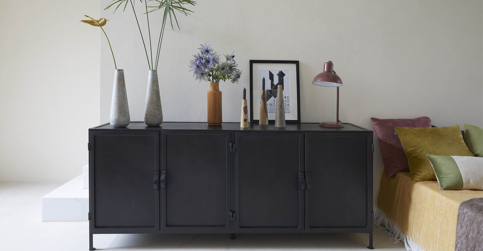 Het nieuwe industrieel, statig en strak in zwart, wit, zandkleur of olijfgroen. Het metalen New Routz Detroit dressoir is een echte eye-catcher in jouw interieur en biedt een zee aan opbergruimte.