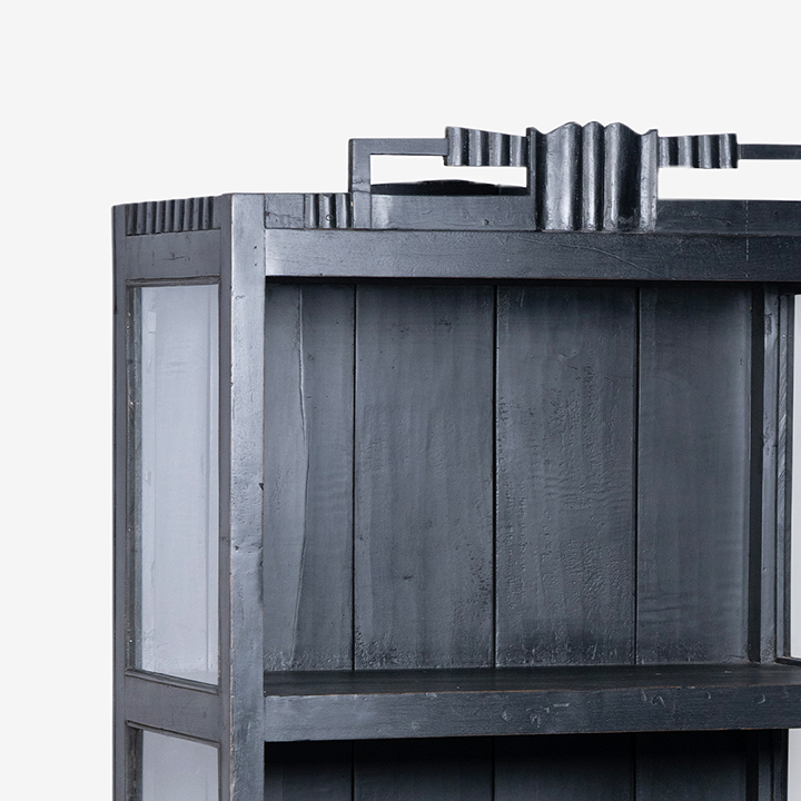 Dit uniek kastje is komt uit de Indische koloniale tijd gerestaureert en vervolgens in zwart afgewerkt. De voorzijde is open met glas aan de zijkanten.