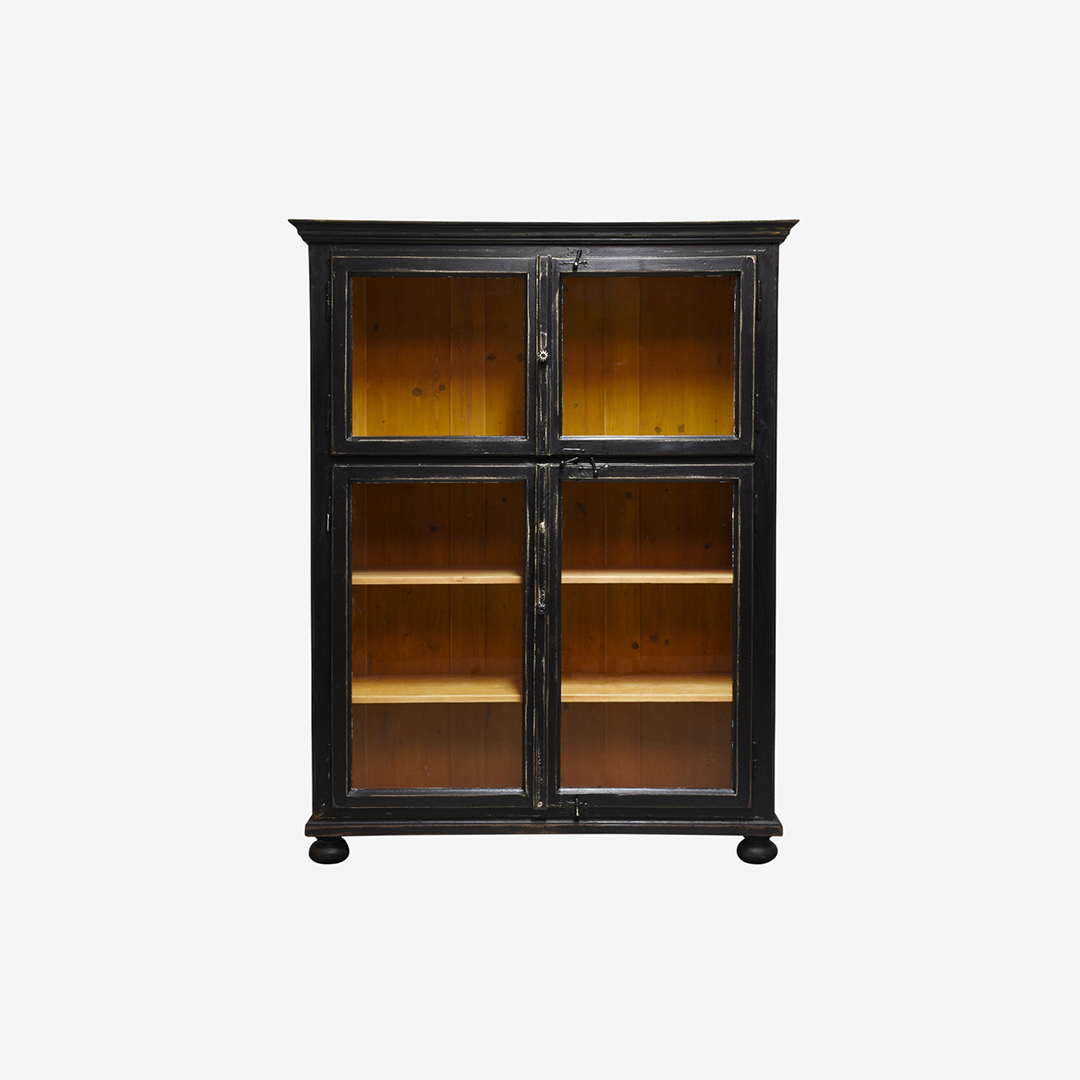 Deze unieke oude houten vitrinekast is helemaal opgeknapt en zorgt voor een authentieke touch aan het interieur.