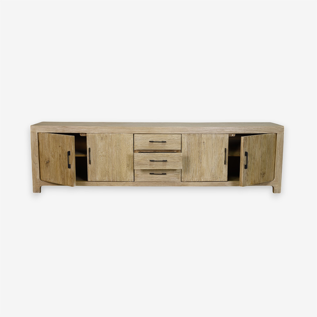 Ontdek de perfecte balans tussen functionaliteit en stijl met ons elegante TV-dressoir, vervaardigd uit robuust elmwood. Laatste modellen. Vraag van te voren naar de voorraad.