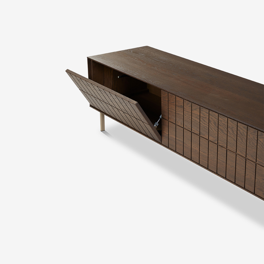 Het Cubio tv-meubel laat zien hoe ritme en rust samen kunnen gaan. Ontworpen in samenwerking met Nathalie Schellekens (studio ONS) en geinspireerd op het tegelpatroon van Engelse metrostations, speelt dit meubel met lijnen en structuur. Verkrijgbaar in diverse maten en kleurafwerkingen.