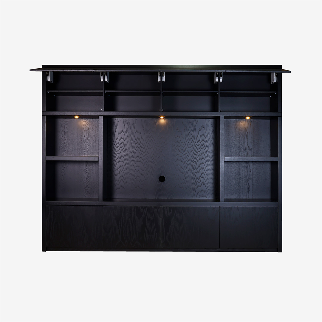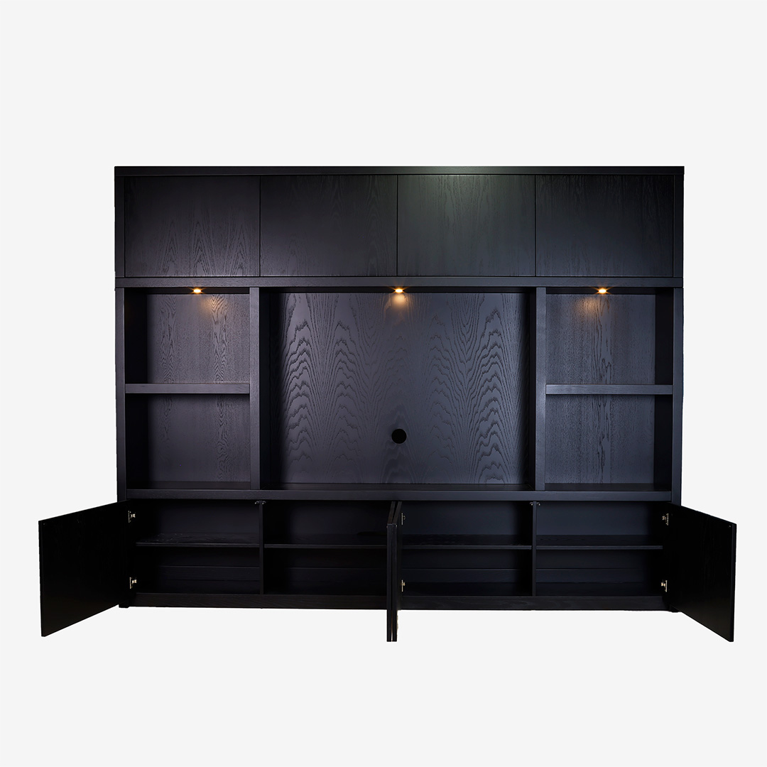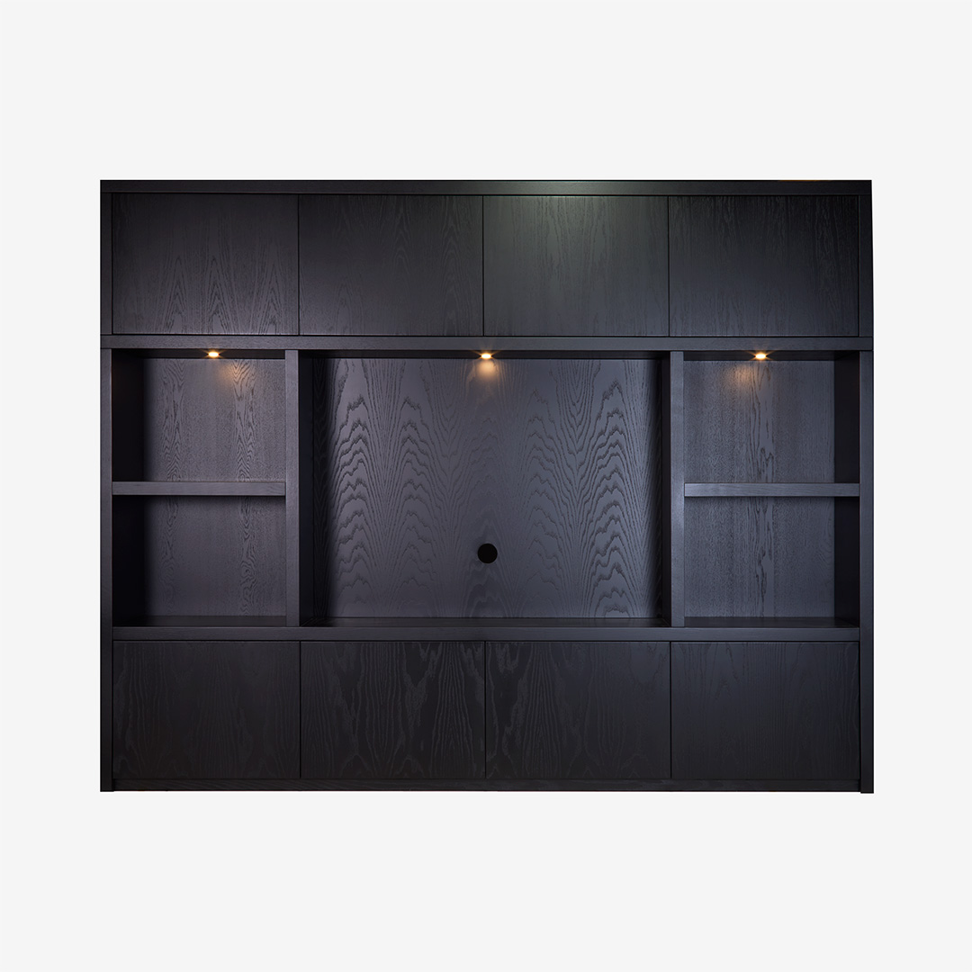 Maak een statement met de wandkast Parijs voorzien van een van voor de televisie. Hij is te personaliseren door te spelen met de indeling en leverbaar in verschillende mooie eiken kleuren.