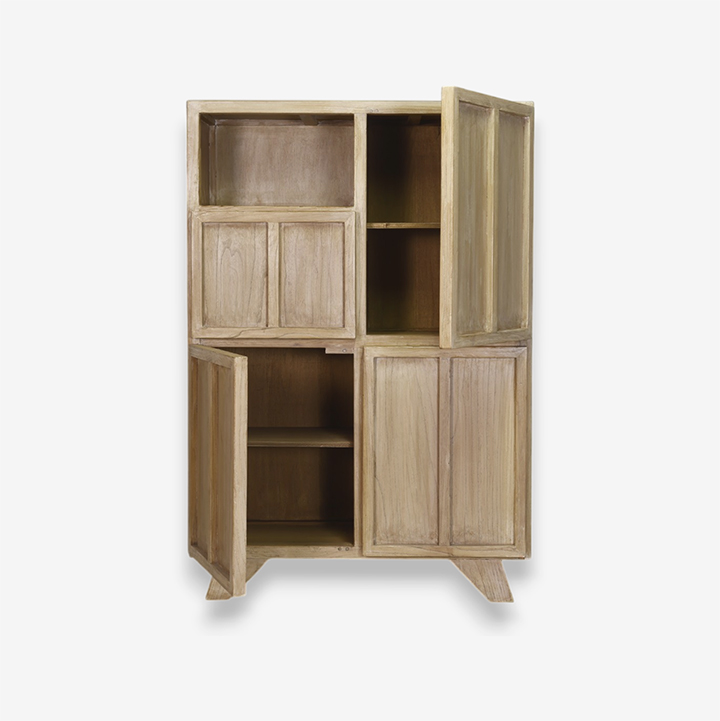 Deze houten variant van de wandkast Ottawa hoog is speciaal voor Het Kabinet geproduceerd en is een statement op zich. Dit unieke meubelstuk combineert functionaliteit met een gedurfd design.