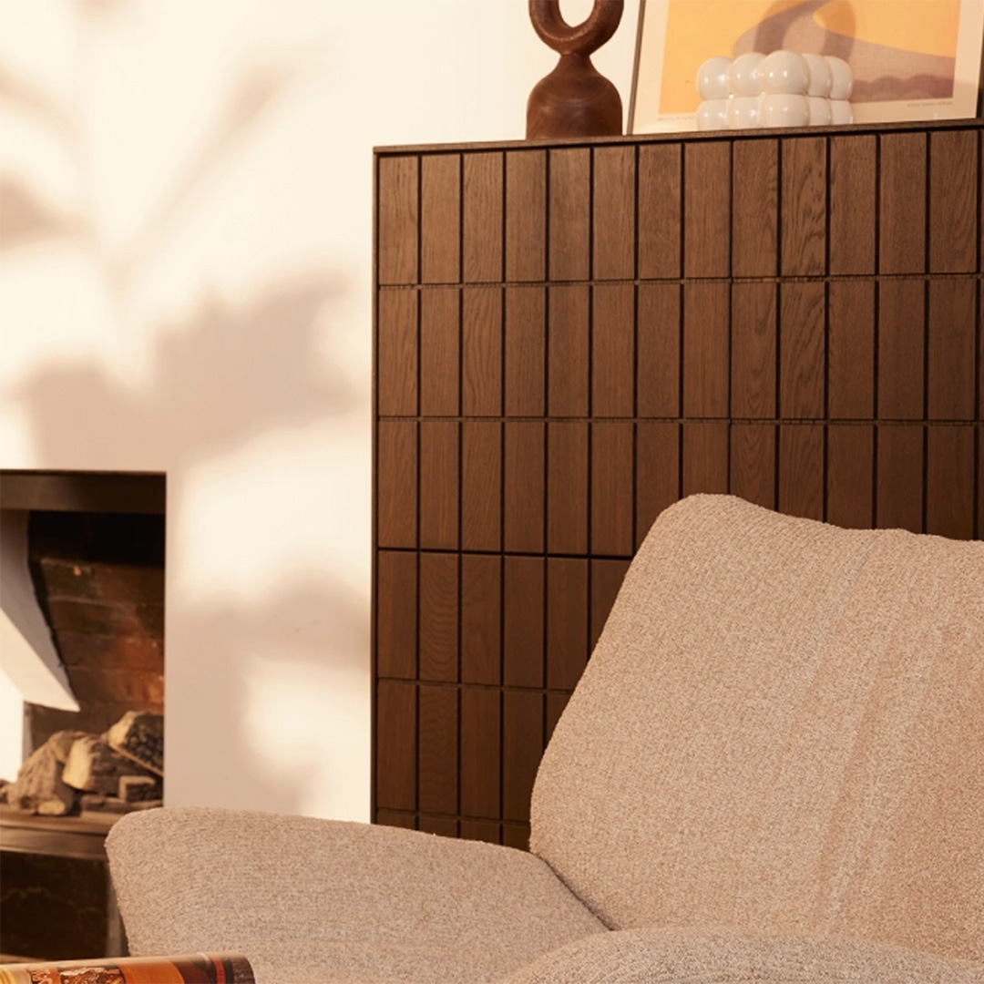 De Cubio wandkast (cupboard) laat zien hoe ritme en rust samen kunnen gaan. Ontworpen in samenwerking met Nathalie Schellekens (studio ONS) en geinspireerd op het tegelpatroon van Engelse metrostations, speelt dit meubel met lijnen en structuur. Verkrijgbaar in diverse kleurafwerkingen.