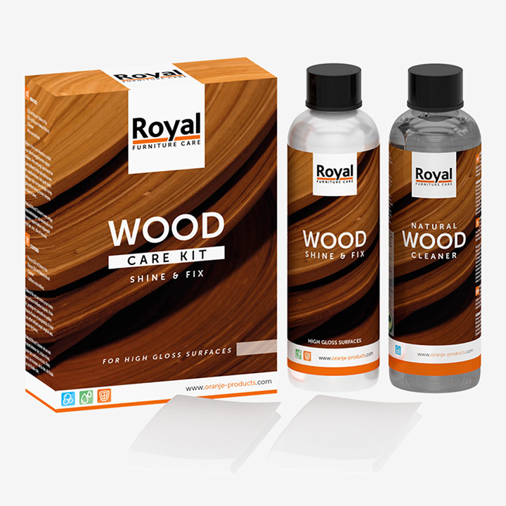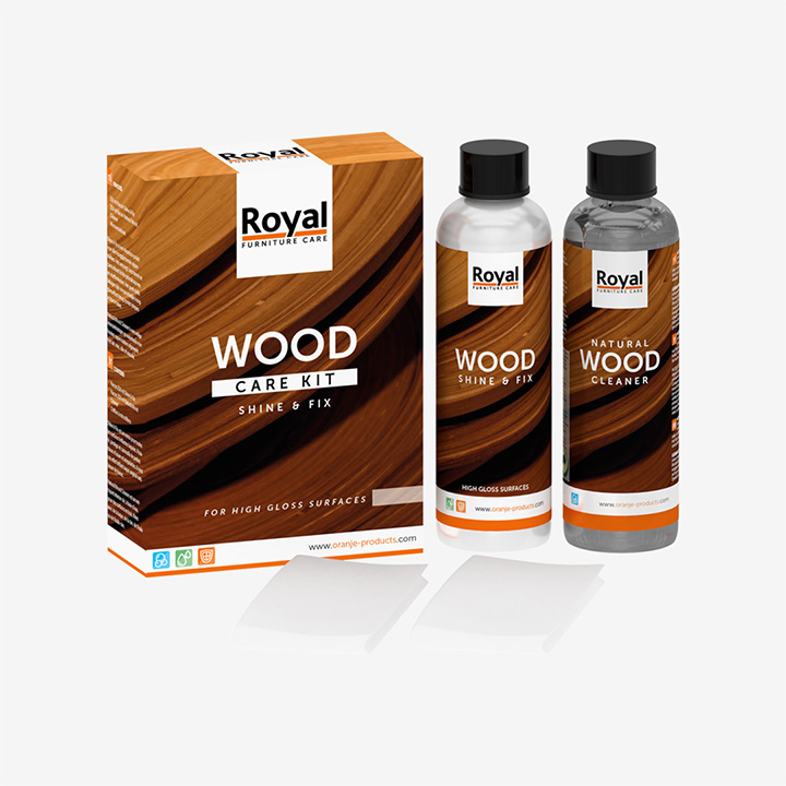Complete set voor hoogglanzende houten meubelen. Reinigt, verzorgt en beschermt.