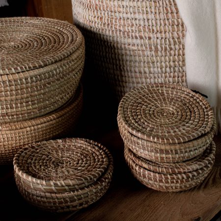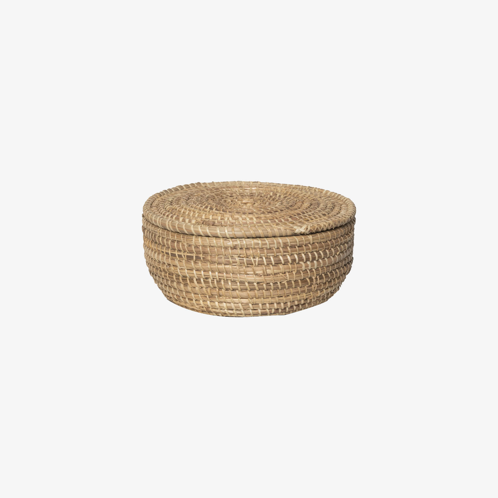 Handgemaakte mand met deksel van riet. Mogelijk in 3 maten.