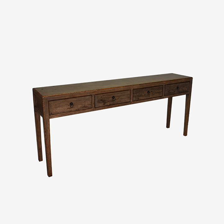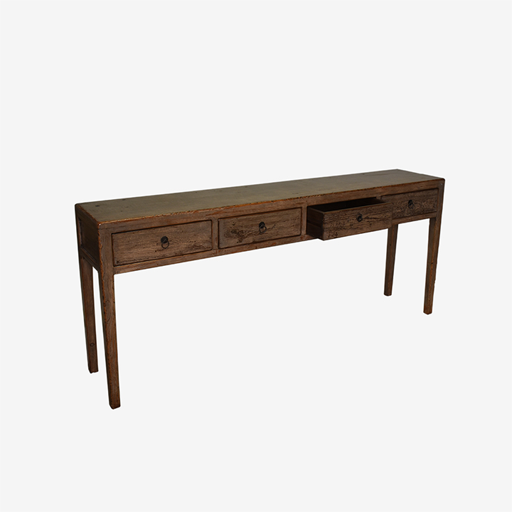 Chinese wandtafel afgewerkt in een bijzondere kleurencombinatie met hoogglans groen-grijs oranje en zwart.