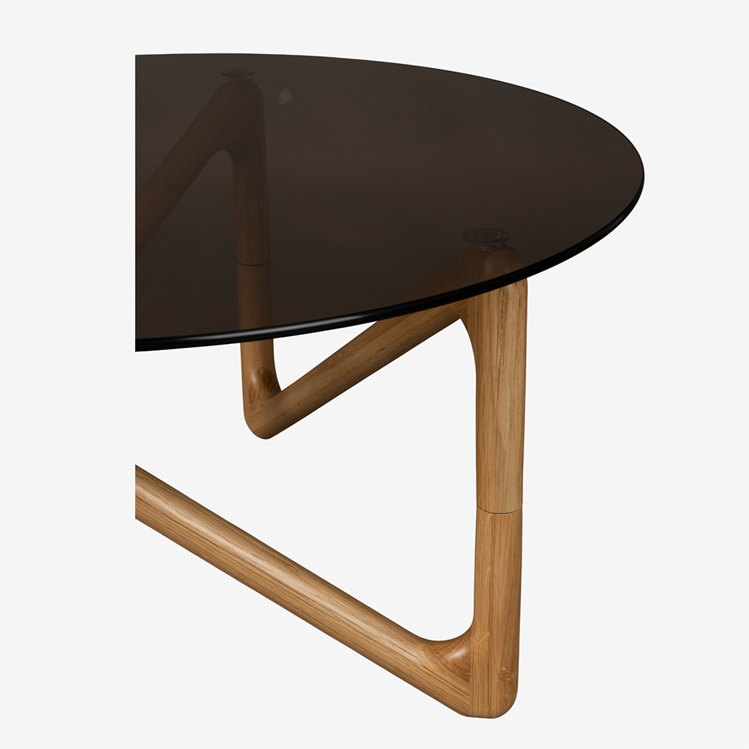 Geef de zithoek meer karakter met de bijzondere Naia salontafel. De Naia is gabaseerd op de golvende beweging van de zee. Dat zie je goed terug in de organische vormen van het onderstel. Het eikenhout met natuurlijke of walnootkleurige beits, geeft bovendien veel warmte af. Dit zorgt in combinatie met het ronde, glazen tafelblad voor een sfeervolle en tikkeltje retro look. Perfect voor het maken van een intieme setting.