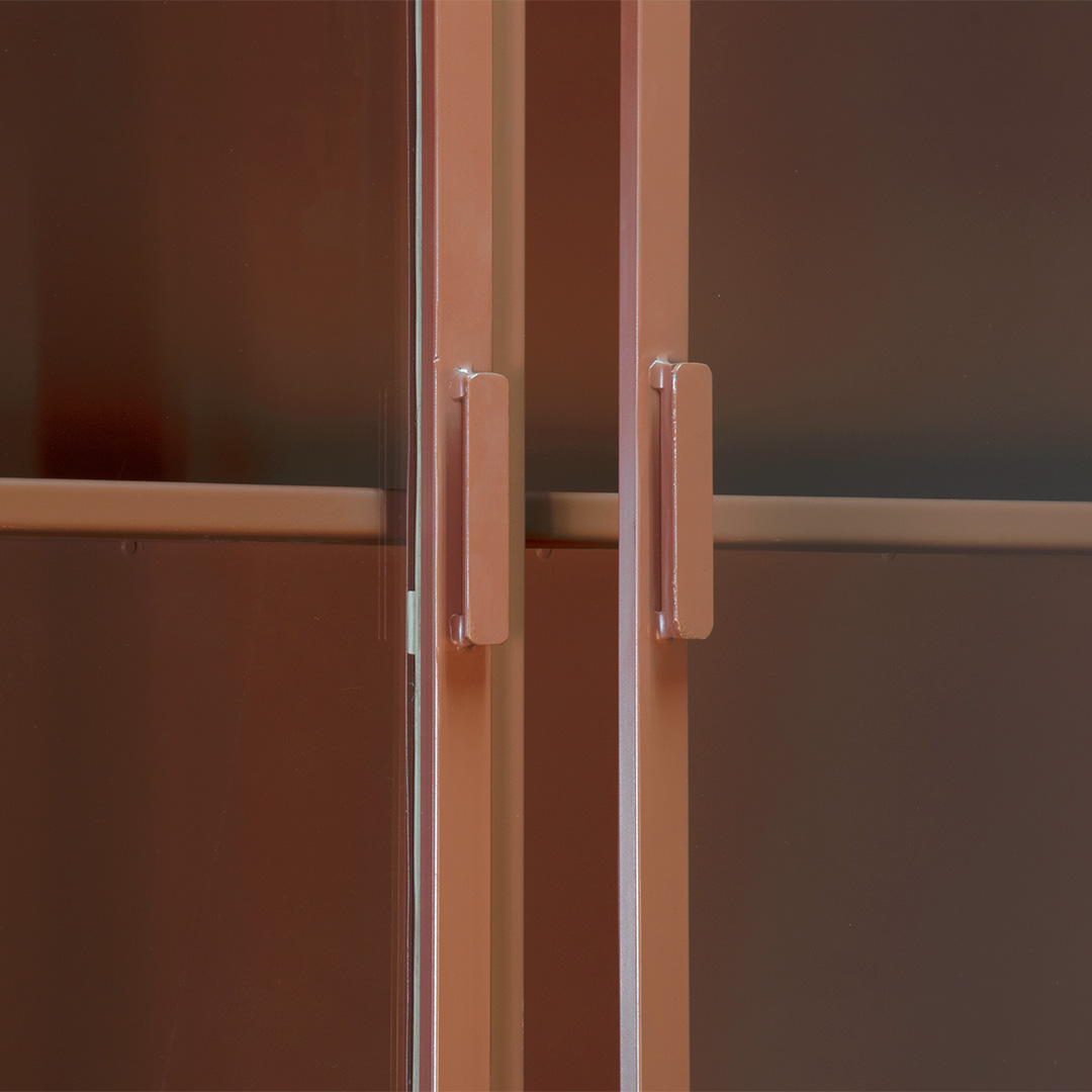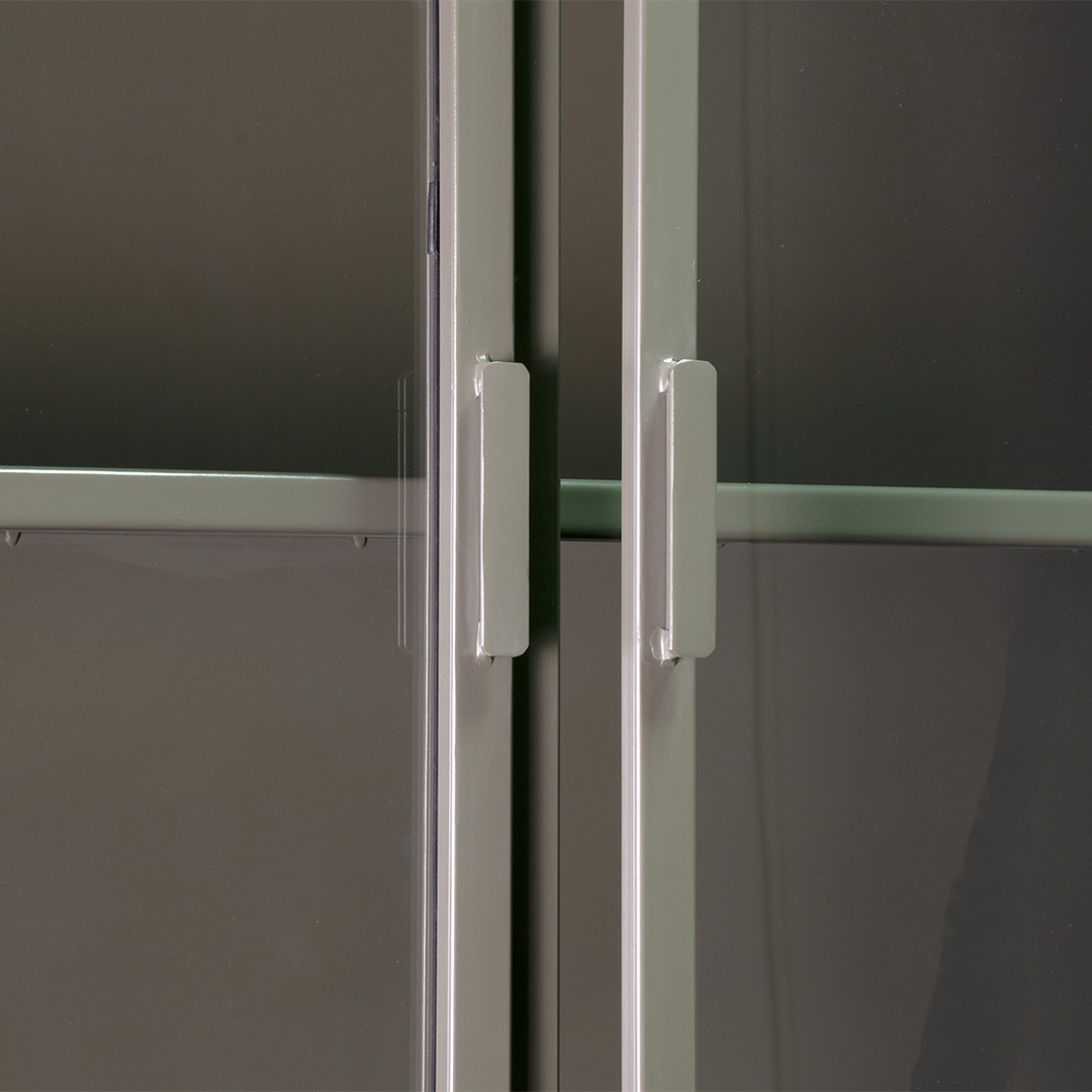 De Garland vitrinekast van New Routz is een echte blikvanger: industrieel van karakter, maar met een elegant silhouet. Het slanke metalen frame en de glazen deuren geven ruimte aan jouw mooiste items, van servies en boeken tot woonaccessoires. Verkrijgbaar in 4 kleuren.