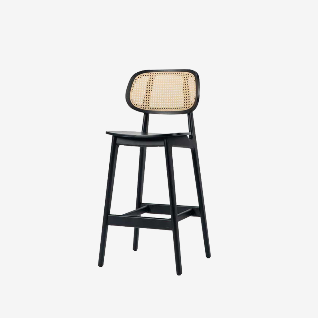 Trendy barstoel Titus (laag) met webbing rug en gebeitst eiken frame. Uit de Titus collectie van Vincent Sheppard.