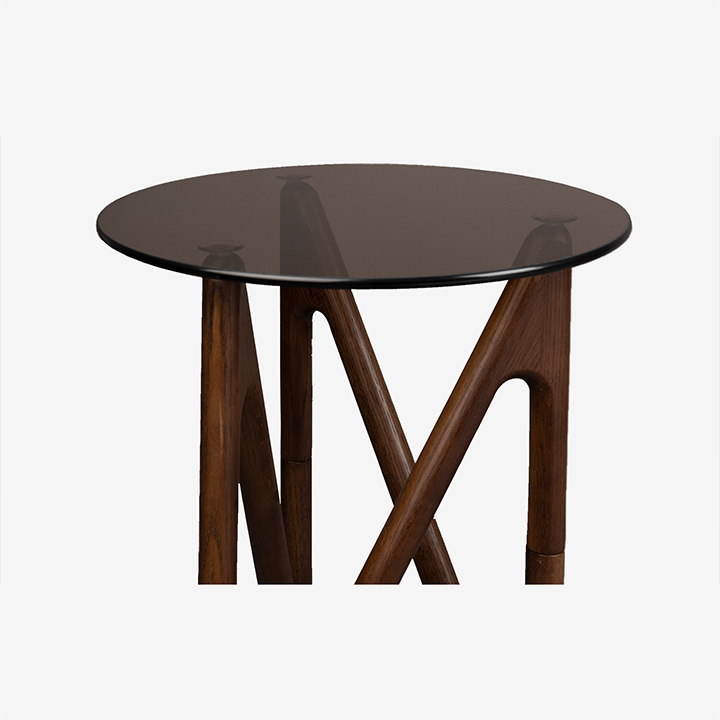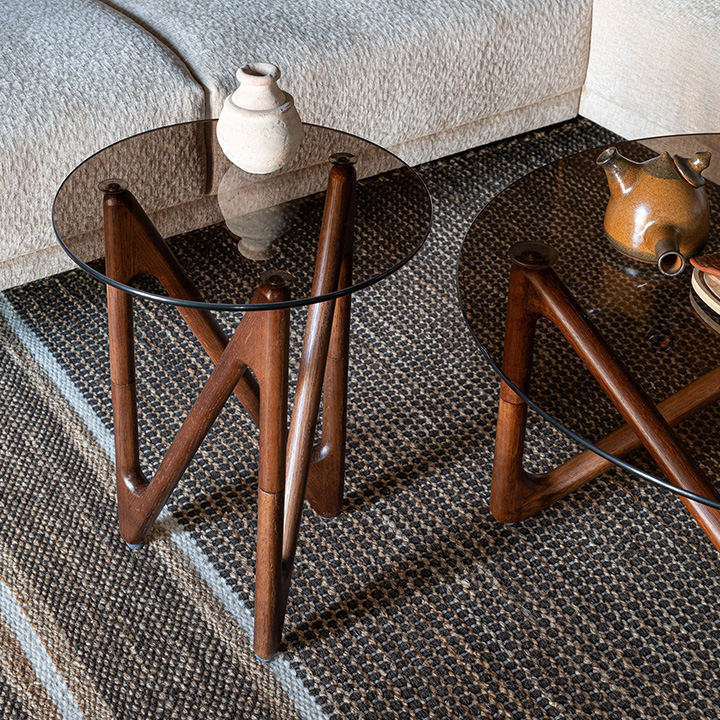 Geef de zithoek meer karakter met de bijzondere Naia bijzettafel. De Naia is gabaseerd op de golvende beweging van de zee. Dat zie je goed terug in de organische vormen van het onderstel. Het eikenhout met natuurlijke of walnootkleurige beits, geeft bovendien veel warmte af. Dit zorgt in combinatie met het ronde, glazen tafelblad voor een sfeervolle en tikkeltje retro look.