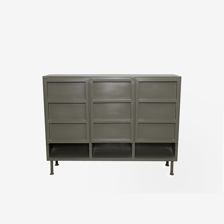 Nieuw industrieel design van New Routz. De strakke vormen van dit compacte dressoir geven vintage uitstraling een geheel nieuwe look.