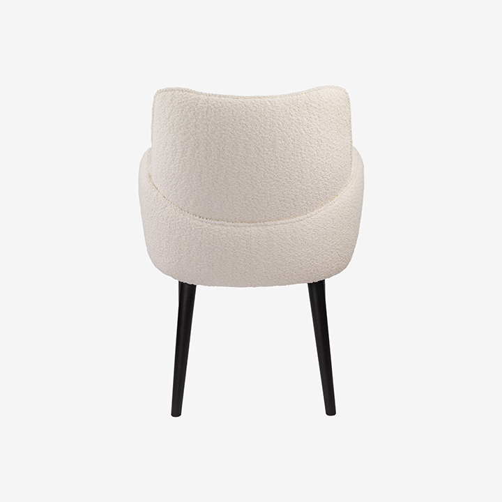 De multifunctionele stoel Mocca heeft speelse rondvormige armleuningen waarbij ronding doorloopt in de rugleuning. De gewatteerde kussens zorgen voor langdurig zitcomfort