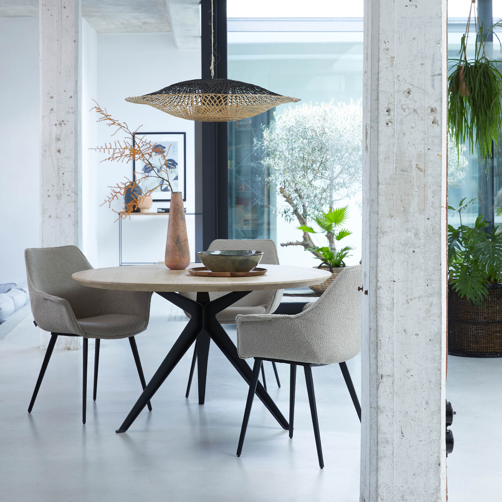 Ben je op zoek naar een mooie, ronde eettafel voor in jouw woning? Model Stella is het middelpunt van de eetkamer. De eigenwijze bovenzijde van het blad in eikenhout, notenhout, fenix of keramiek in combinatie met het unieke metalen onderstel maakt deze eetkamertafel net even anders.