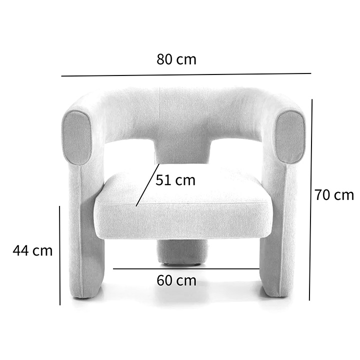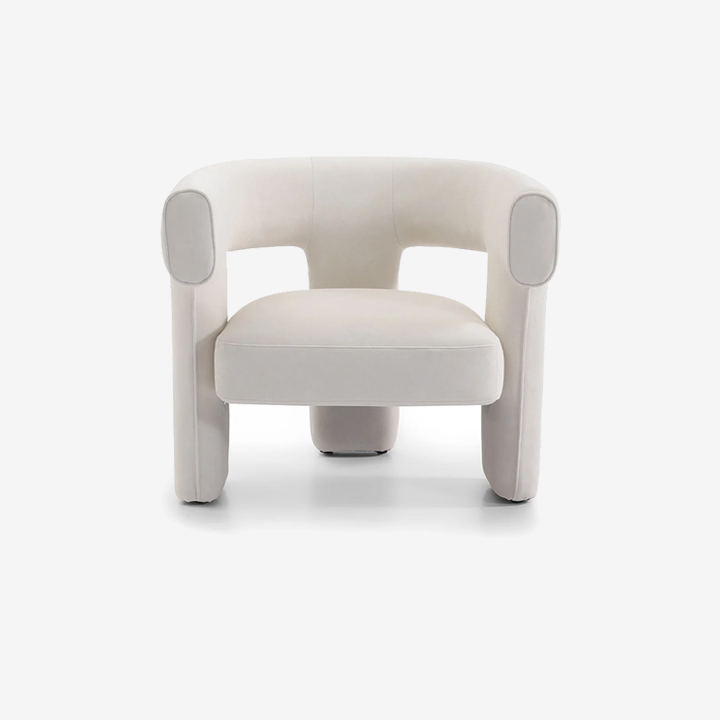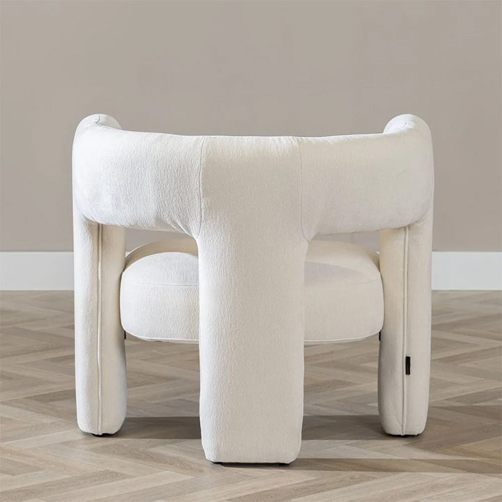 Deze fauteuil is aaibaar tot aan de grond. Zelfs de poten zijn meegestoffeerd.