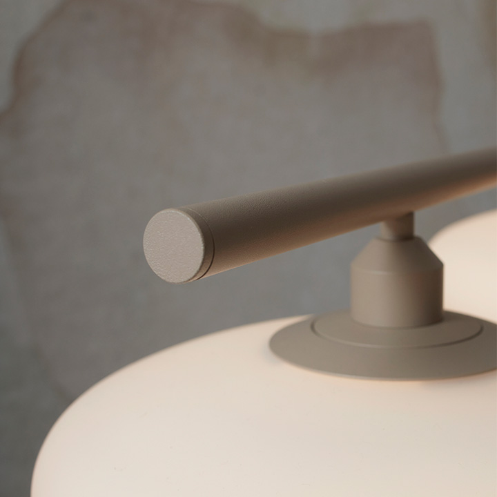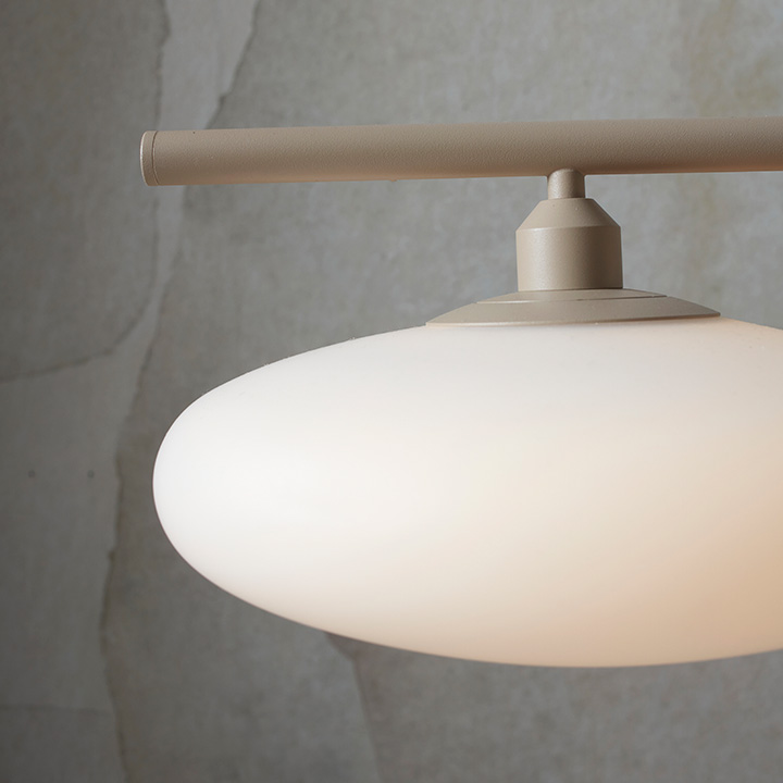 Moderne hanglamp met ronde vormen voorzien van 3 mat wit glazen schijven.