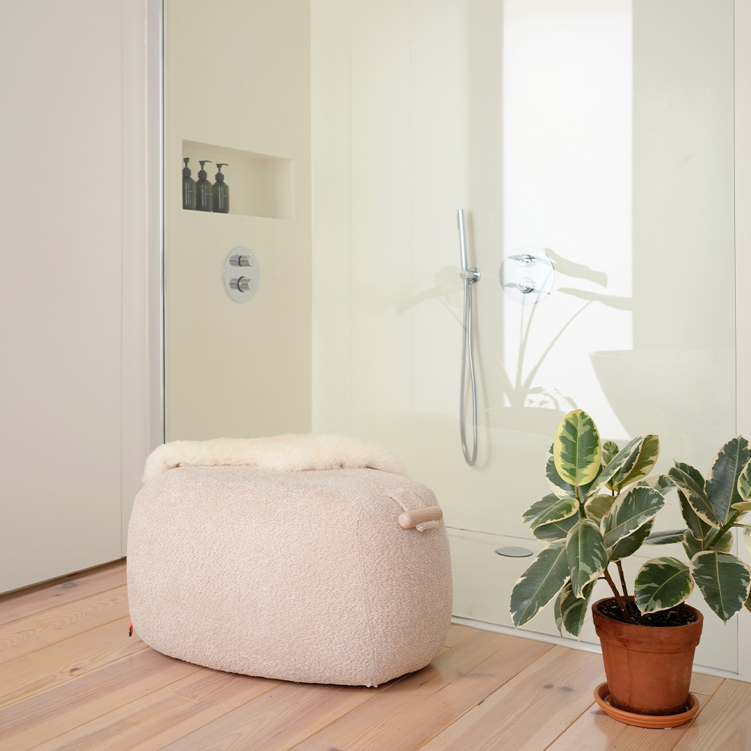 Organisch vormgeven hocker verkrijgbaar in vele kleuren en dessins.