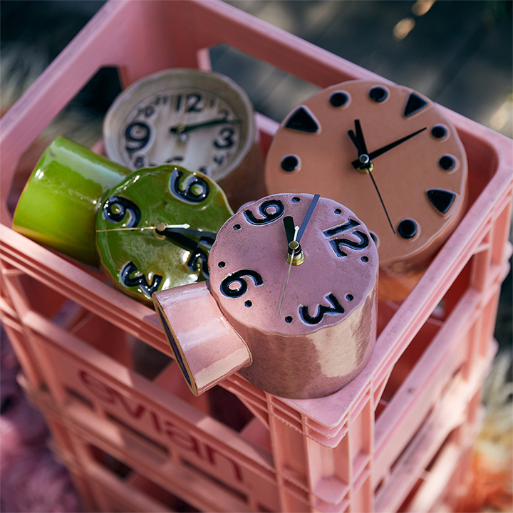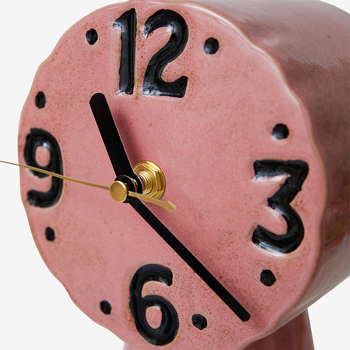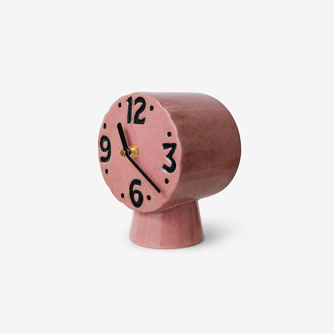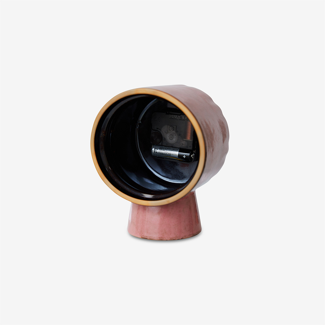 Tafelklok van keramiek. Uniek door de handgemaakte afwerking. Verkrijgbaar in 3 kleuren.