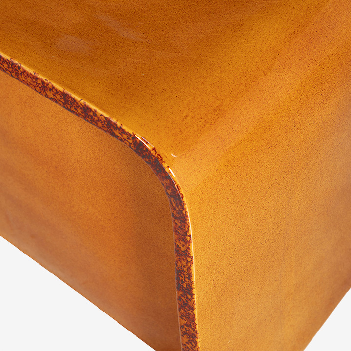 De Shaol bijzettafel is vormgegeven met een handgemaakte mal die zorgt voor een natuurlijk oneffen oppervlak en is gamaakt van glanzend geglazuurd keramiek.
