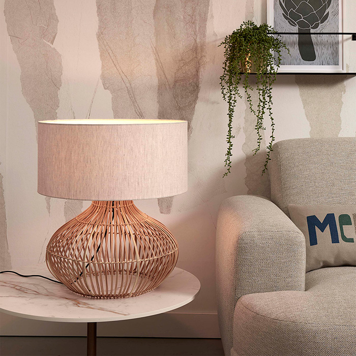 Voeg een vleugje natuurlijke charme toe aan je interieur met de tafellamp Kalahari. Deze lamp brengt een warme en knusse sfeer in huis en is gemaakt van duurzame materialen. De kap is verkijgbaar in 8 kleuren.