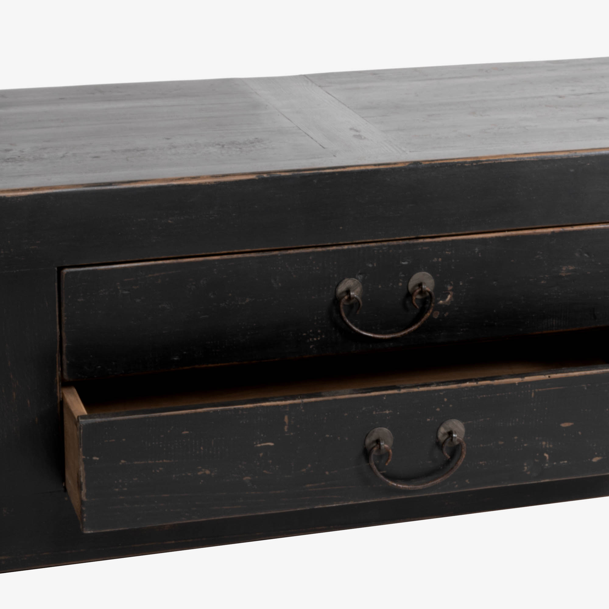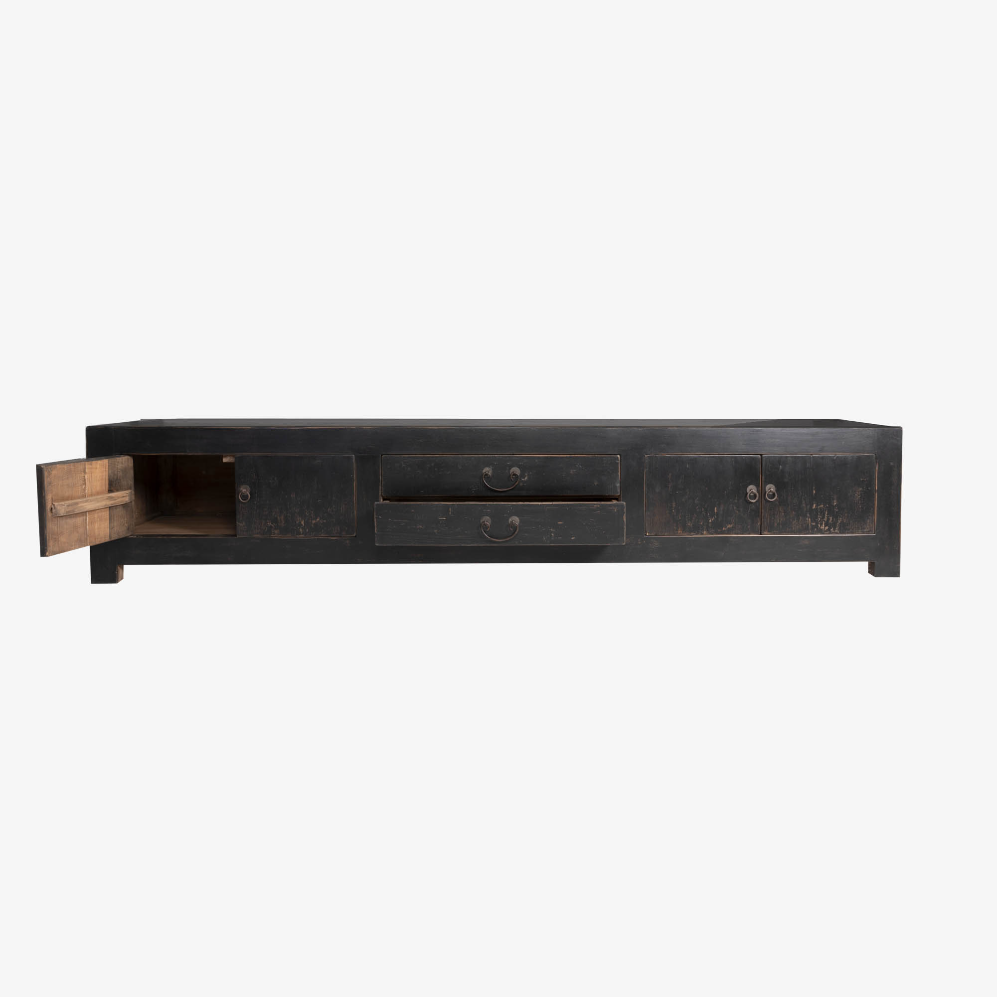 Tv dressoir Raw heeft een stoere uitstraling. De donkere kleur in combinatie met de grove bewerking geven karakter aan dit tv meubel. De handgrepen zorgen voor een klassieke touch.
