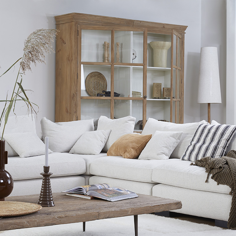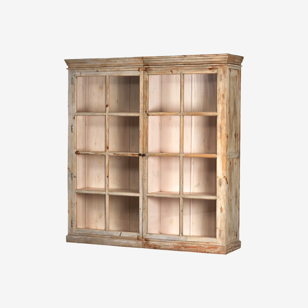 Deze statige houten kast met royale afmeting is een echte blikvanger met klassieke uitstraling om je mooiste spullen in tentoon te stellen.