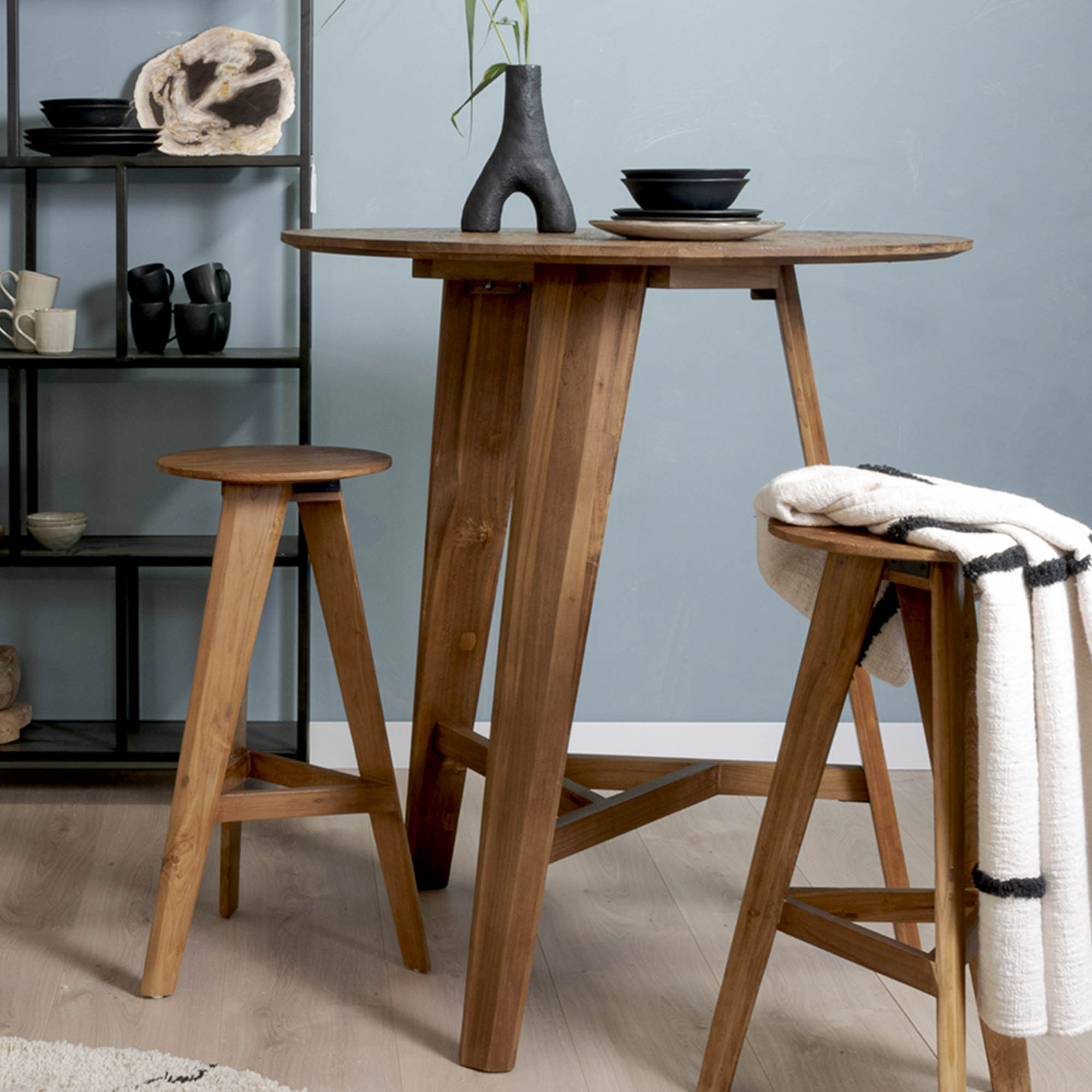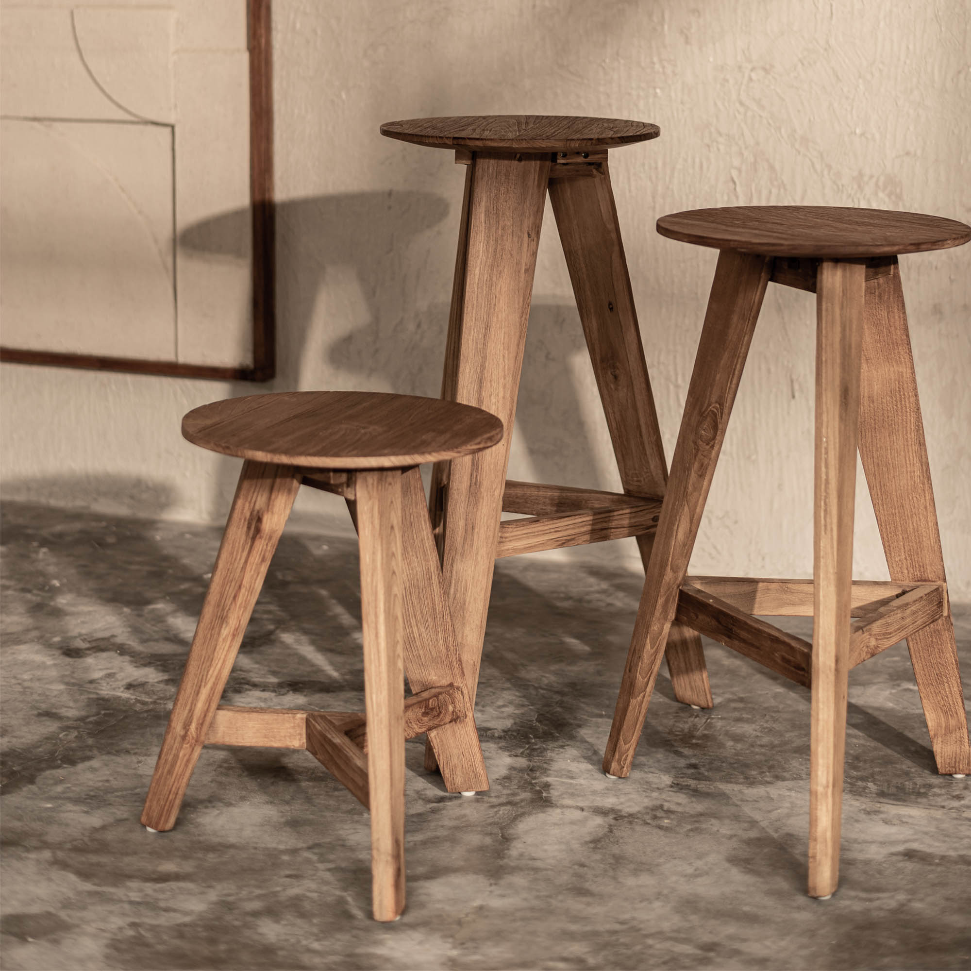 De driepotige Berri Barkruk is volledig gemaakt van sterk teruggewonnen teakhout. De natuurlijke structuur van het oude hout met zichtbare nerven, geeft het meubelstuk een rustieke, elegante en tijdloze look. Een klassieke en duurzame barkruk met een lange levensduur.