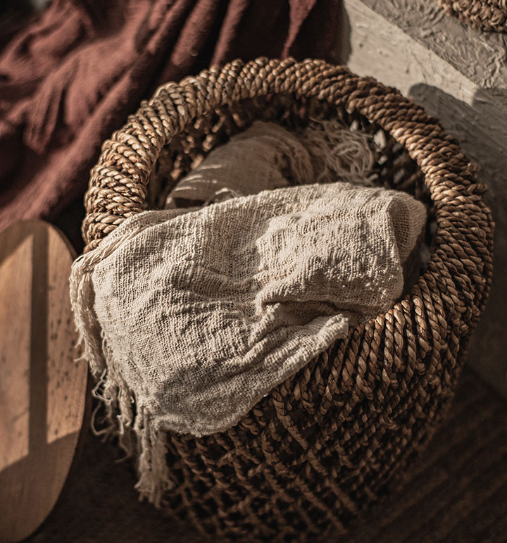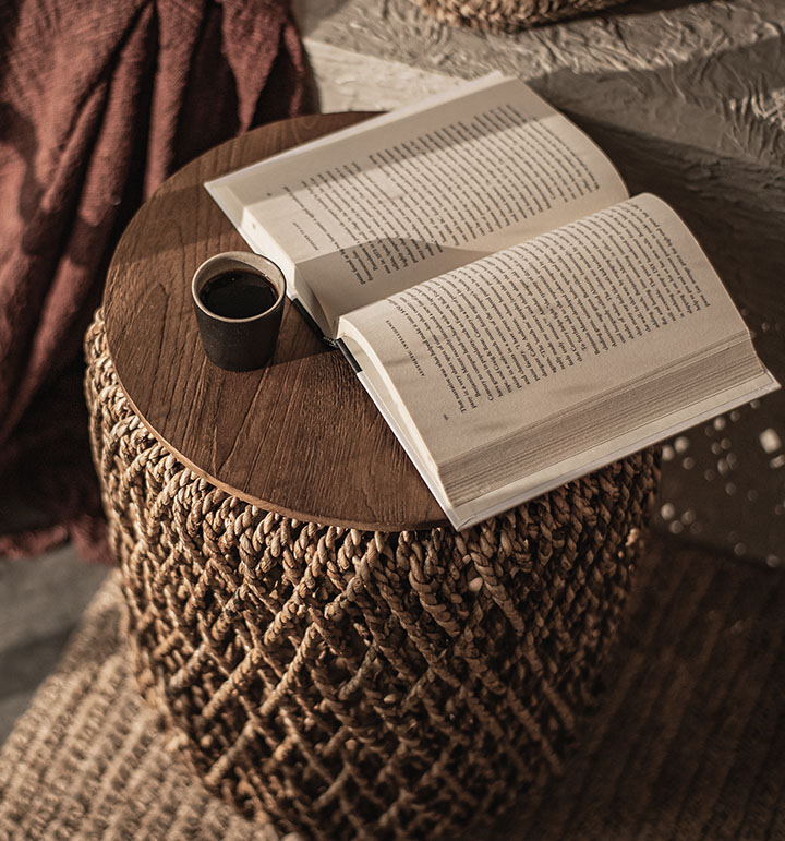 Dit veelzijdige meubelstuk kan gebruikt worden als salontafel, poef of decoratie. Zonder de bovenkant kan hij ook gebruikt worden als mand.