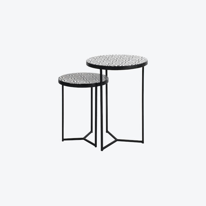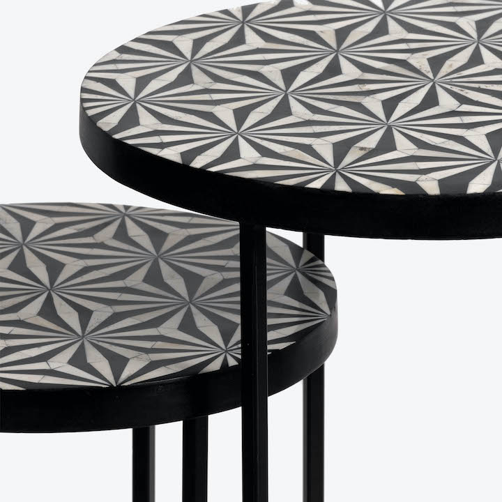 Het met de hand ingelegd motief zorgt voor een unieke toevoeging aan vrijwel ieder interieur.