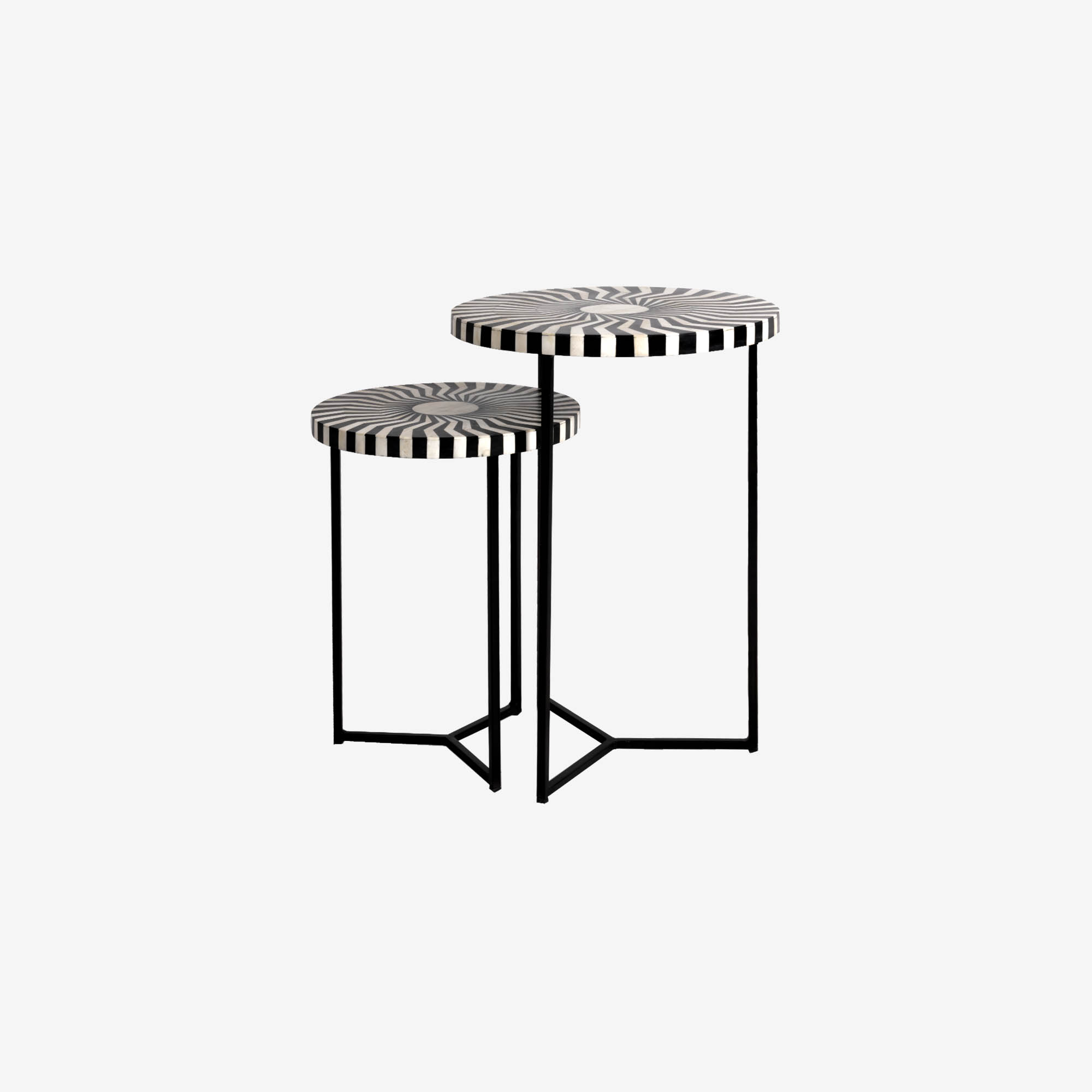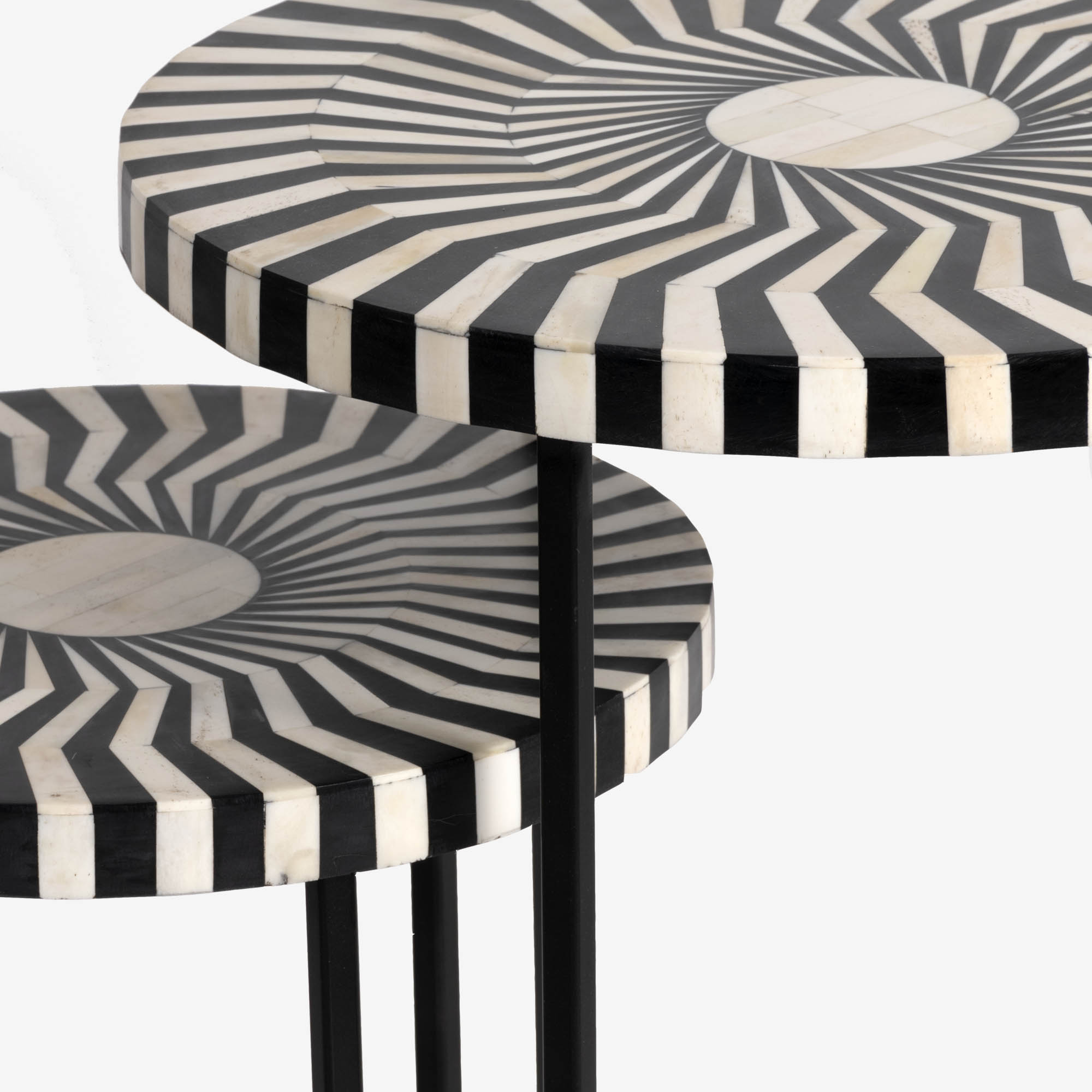Het met de hand ingelegde grafische motief zorgt voor een unieke toevoeging aan vrijwel ieder interieur.