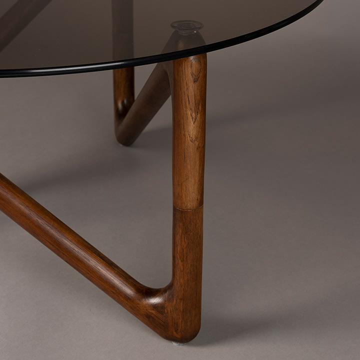Geef de zithoek meer karakter met de bijzondere Naia salontafel. De Naia is gabaseerd op de golvende beweging van de zee. Dat zie je goed terug in de organische vormen van het onderstel. Het eikenhout met natuurlijke of walnootkleurige beits, geeft bovendien veel warmte af. Dit zorgt in combinatie met het ronde, glazen tafelblad voor een sfeervolle en tikkeltje retro look. Perfect voor het maken van een intieme setting.