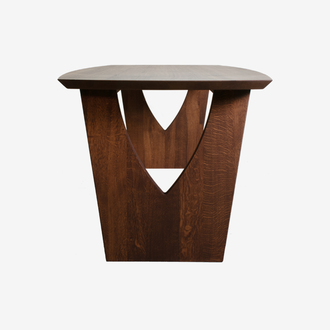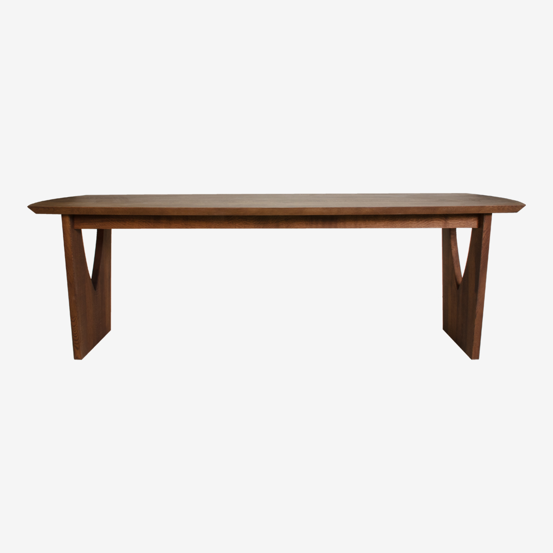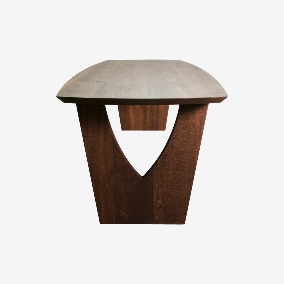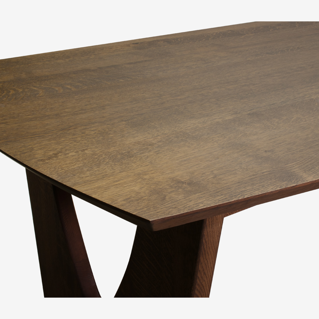 Tafel van massief eikenhout op eigen Kabinet ontworpen onderstel. Stel ook jouw eettafel samen en ontwerp je eigen, unieke designtafel.