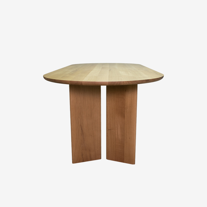 Tafel van massief eikenhout op eigen Kabinet ontworpen onderstel. Verkrijgbaar in een groot aantal afmetingen en diverse kleuren. Stel ook jouw eettafel samen en ontwerp je eigen, unieke designtafel.