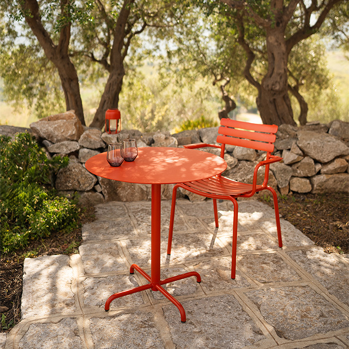 De Pico tuintafel bewijst dat klein ook krachtig kan zijn. Met zijn strakke lijnen, verfijnde details en luchtige uitstraling brengt deze tafel moeiteloos balans in elk buiten of binnenterras. Ideaal voor dat eerste kopje koffie in de ochtendzon of een casual aperitief op een knusse patio. Verkrijgbaar in 2 afmetingen en 6 kleuren.