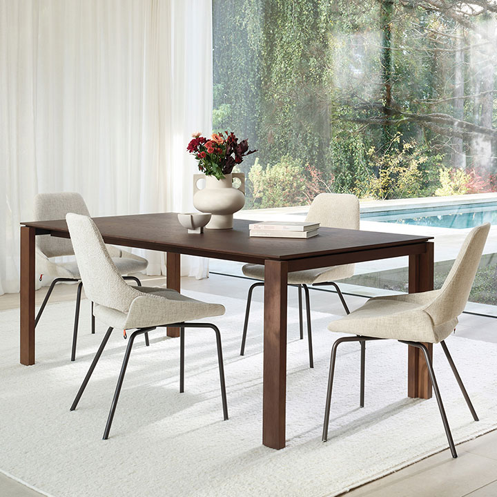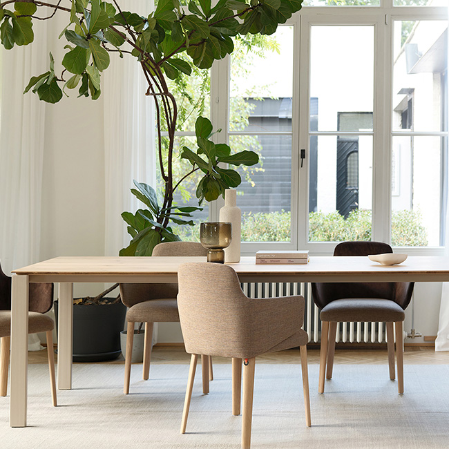 Ontdek de veelzijdigheid en stijl van de Altera eettafel. Met zijn indrukwekkende reeks aan maten past Altera zich aan elke ruimte aan. Of het nu compact is vanaf 140 cm of met uitschuifbare delen waarmee de tafel tot 220 cm verlengd kan worden en bijna zijn grootte verdubbelt, de Altera combineert functionaliteit met stijl. Verkrijgbaar in diverse kleuren op het onderstel en het tafelblad.