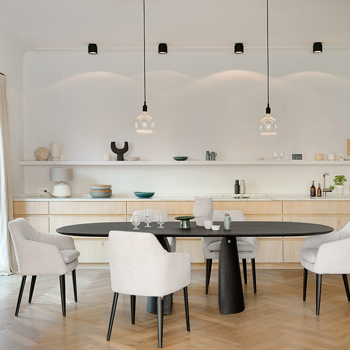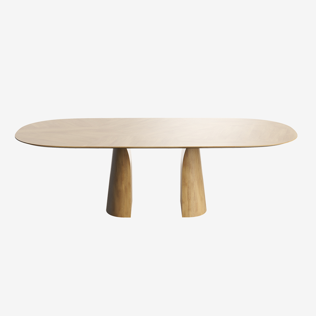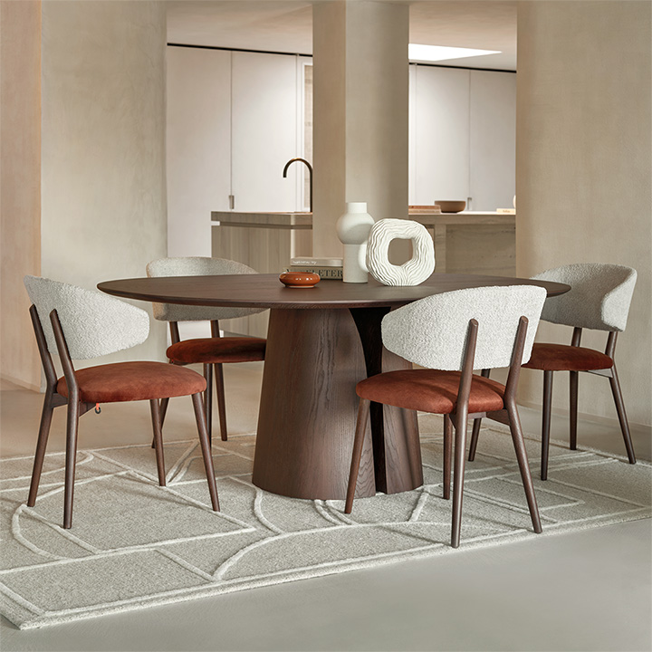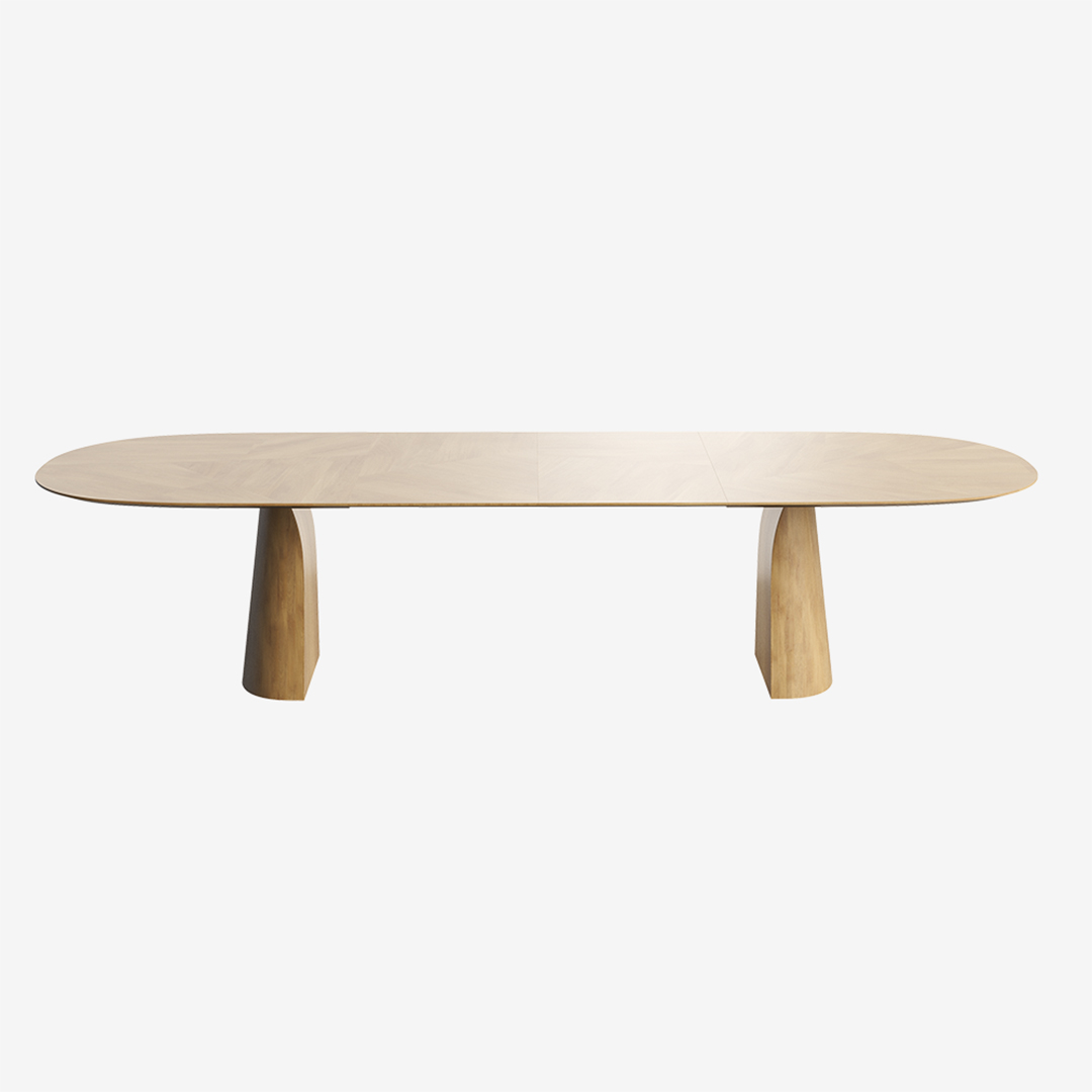 De eettafel Blossom zorgt voor een warme sfeer in elke ruimte. Deze massief houten tafel met afgeronde hoeken zorgt onmiddellijk voor warmte in de kamer. Het centrale onderstel bespaart veel vloeroppervlak en biedt optimale beenruimte. Verkrijgbaar in diverse kleuren en afmetingen en als uitschuiftafel met 1 of 2 tussenstukken.