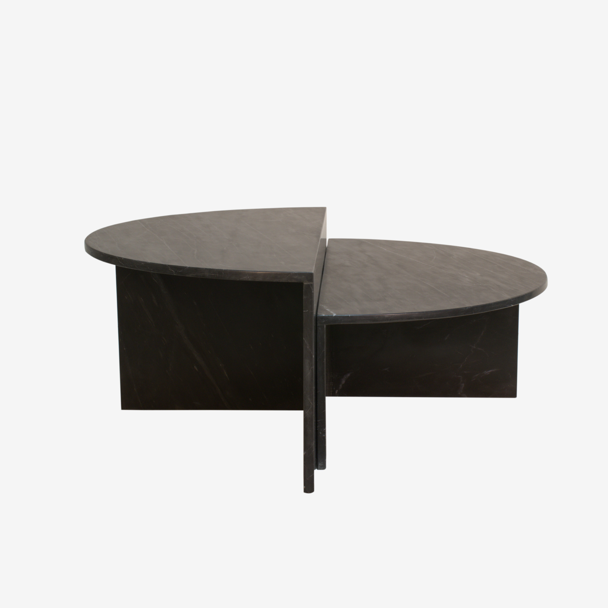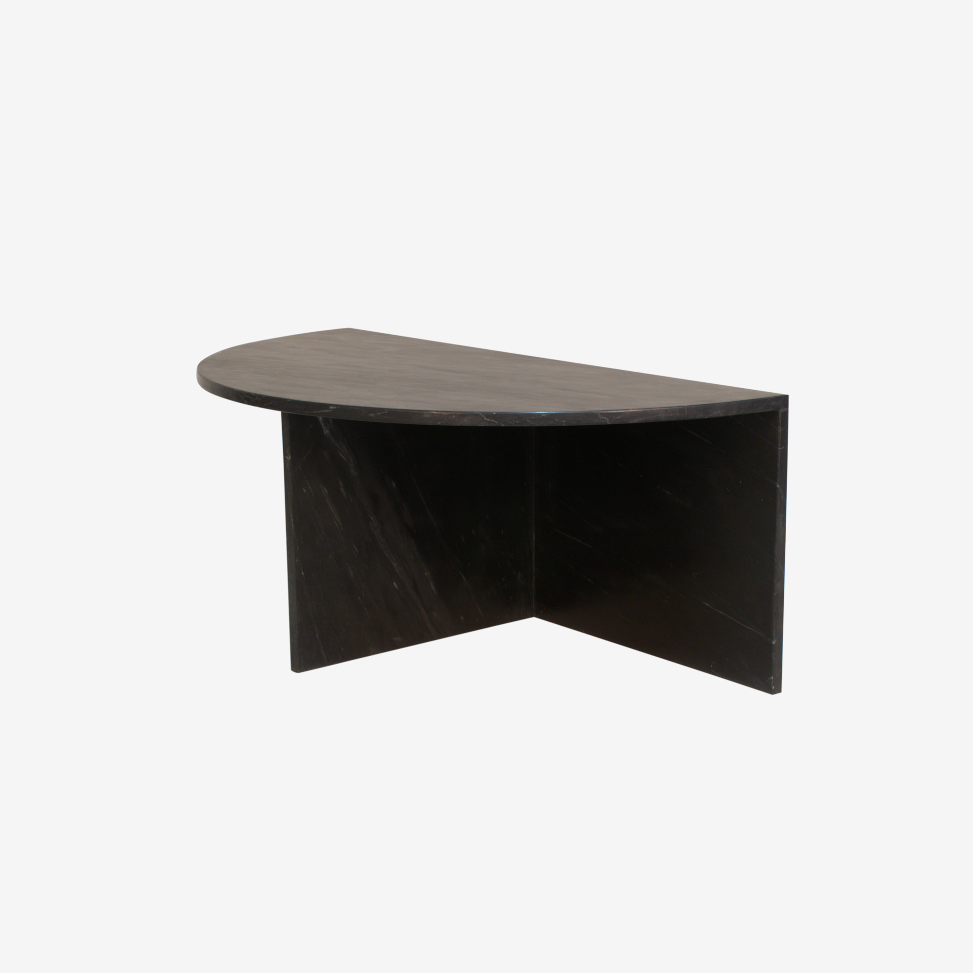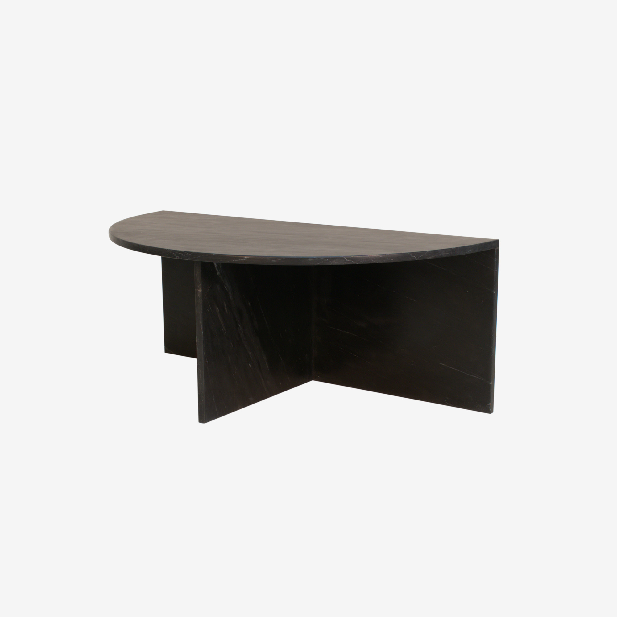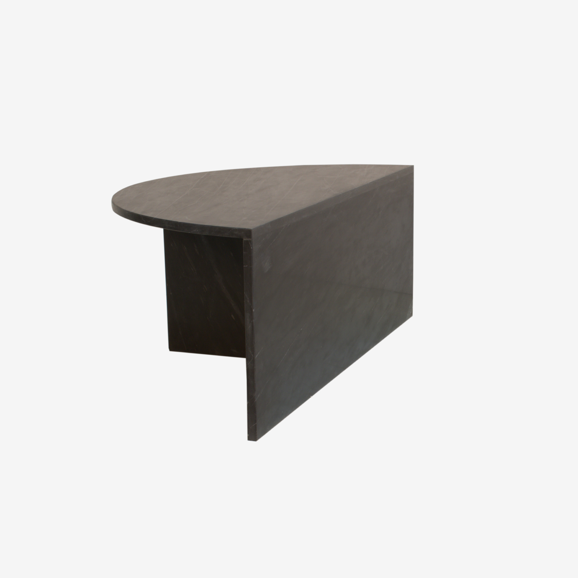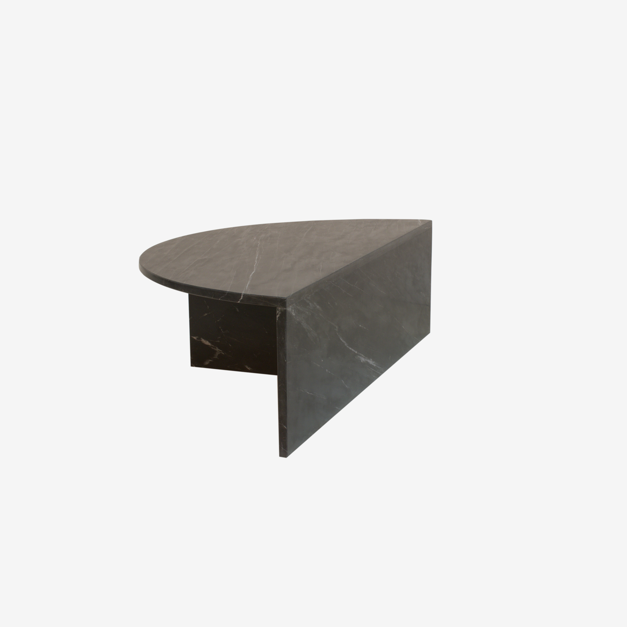 Halfronde salontafel gemaakt van dik marmer.