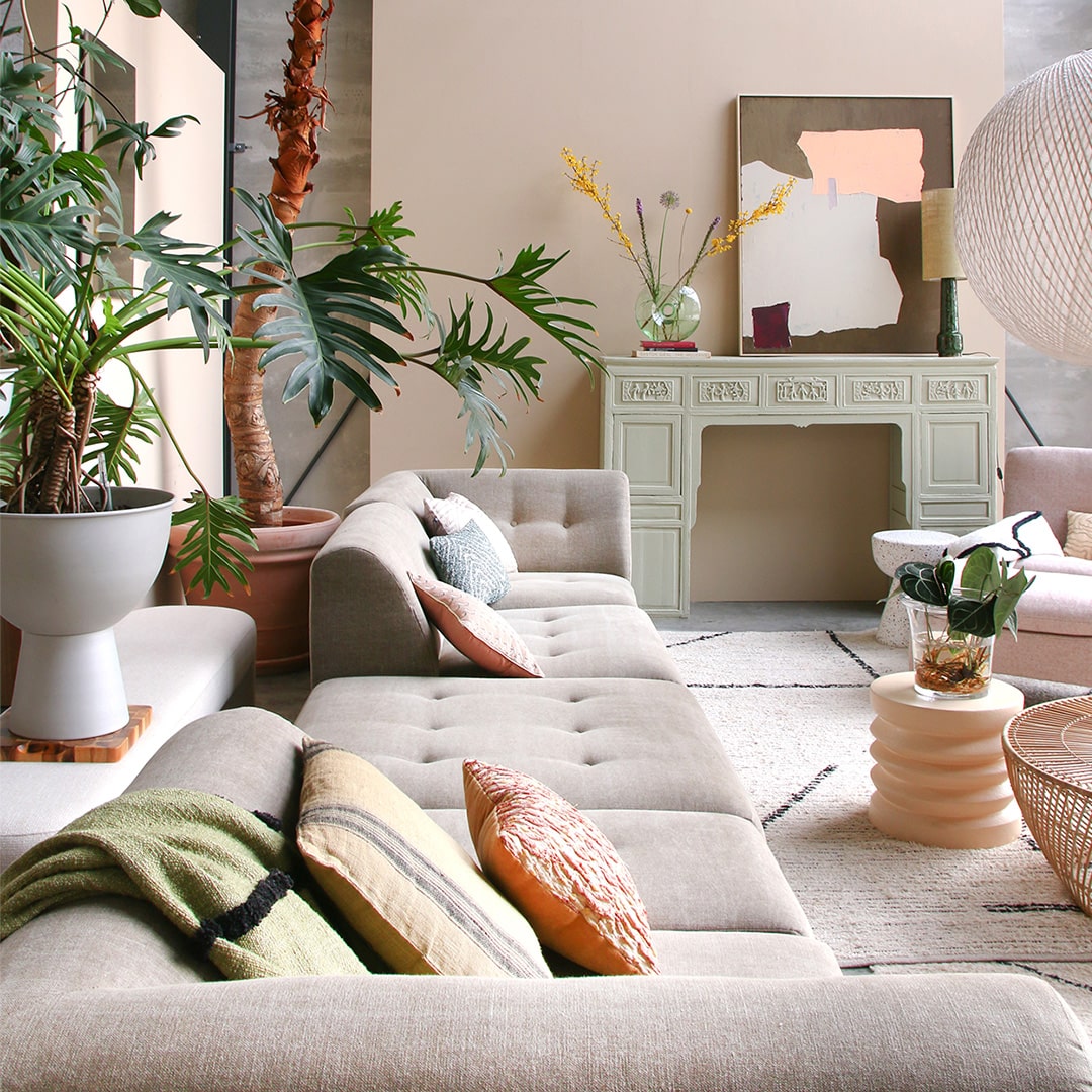 Durf anders te zijn en voeg deze opvallende beigekleurige stenen bijzettafel toe aan je interieur. Van het merk HKliving.