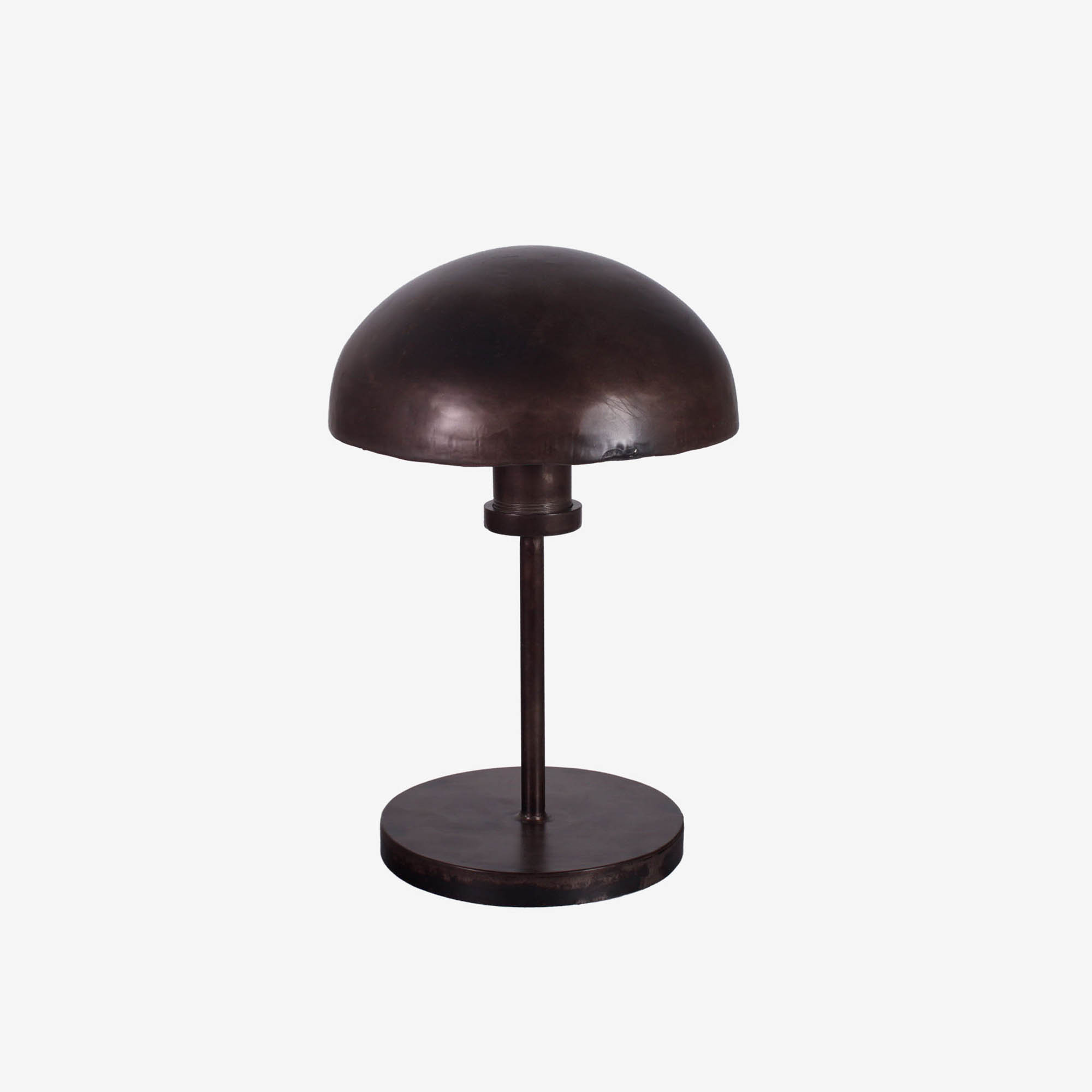 Ambachtelijk gemaakt industrieel tafellampje met bolvormig kapje. Leverbaar in 5 kleuren.