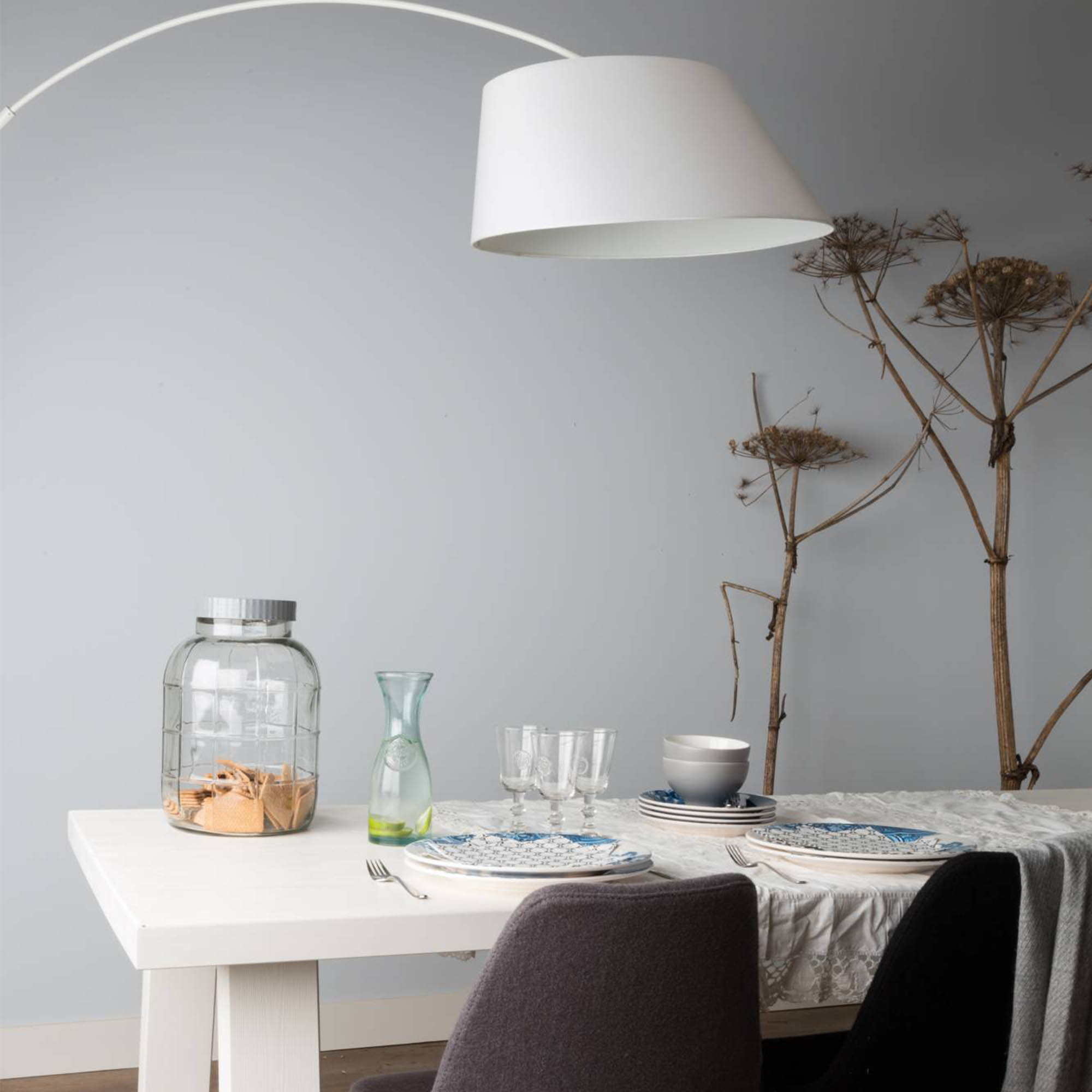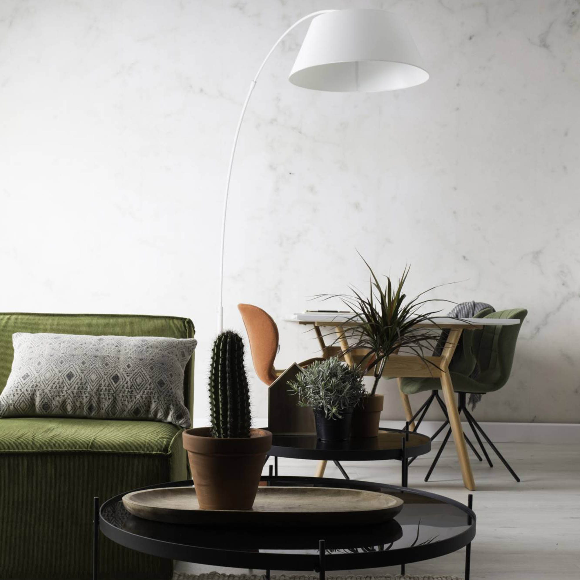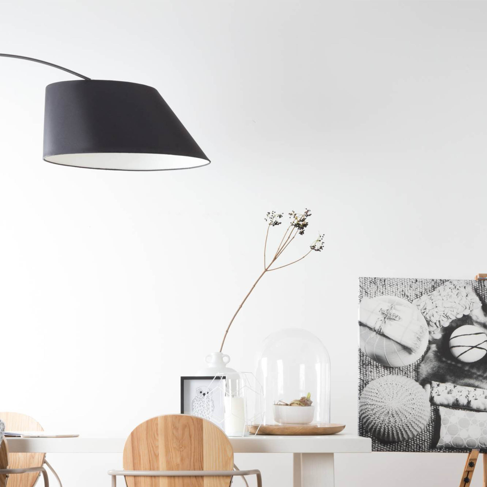 De booglamp Arc is gemaakt van wit, of zwart metaal en voorzien van een bijzondere asymmetrische stoffen kap. Gebruik de vloerlamp Arc in de woonkamer, of op kantoor.