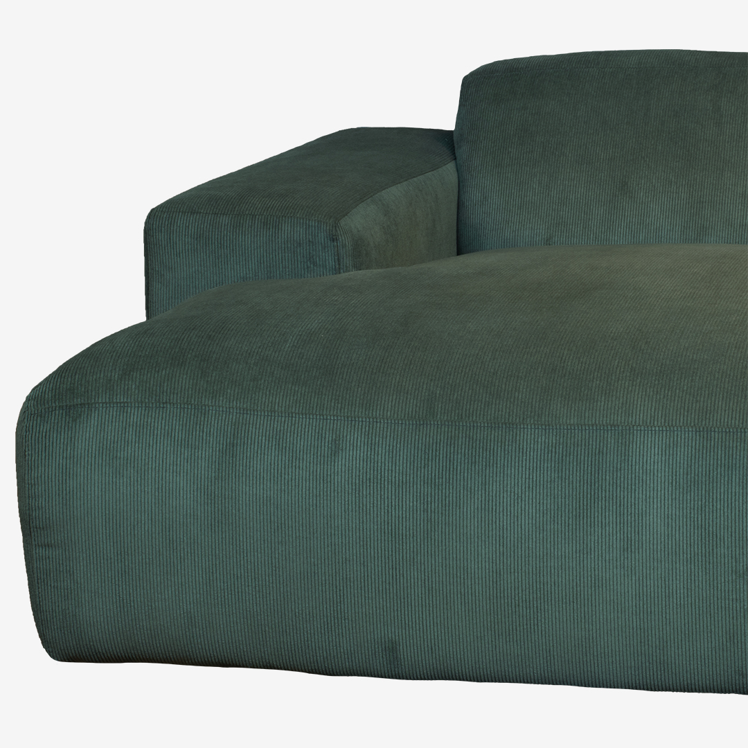 1 maal beschikbaar: het showmodel van de moderne en comfortabele bank Camilo bestaande uit een 2-zits met 1 arm en een grote Divan bekleed met de stof Cord 77.