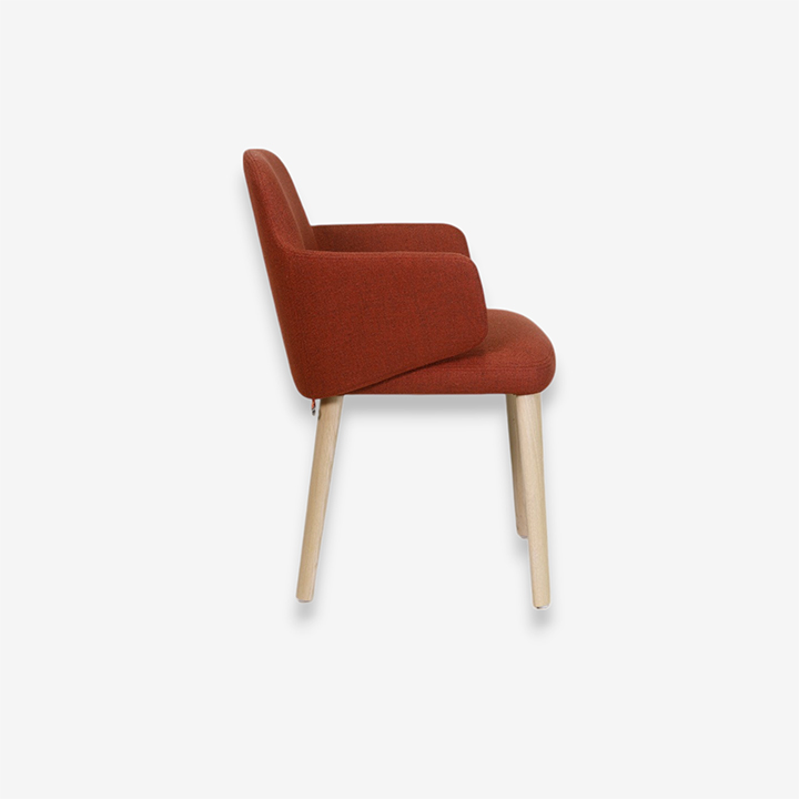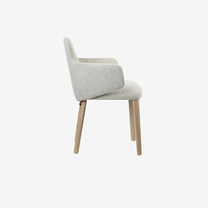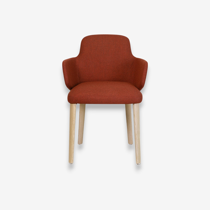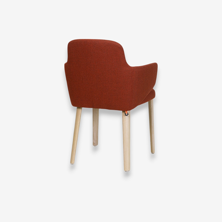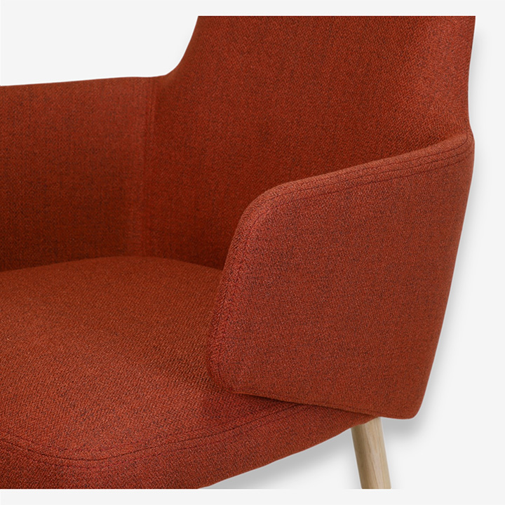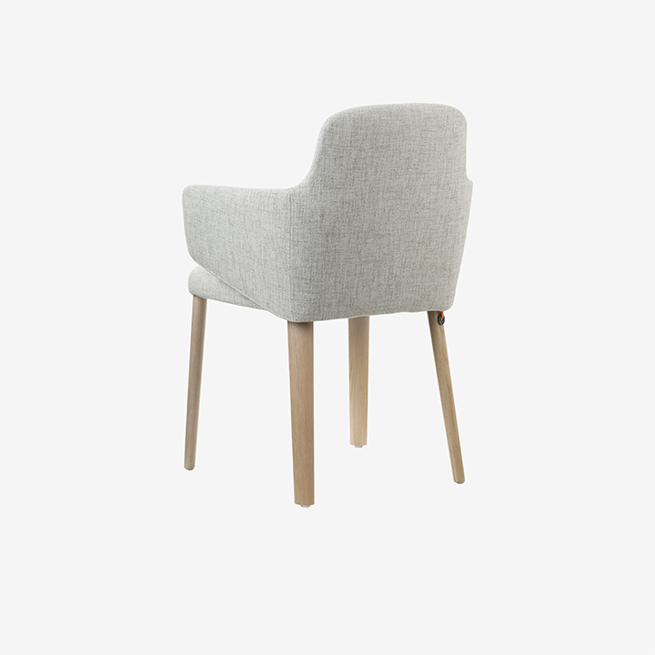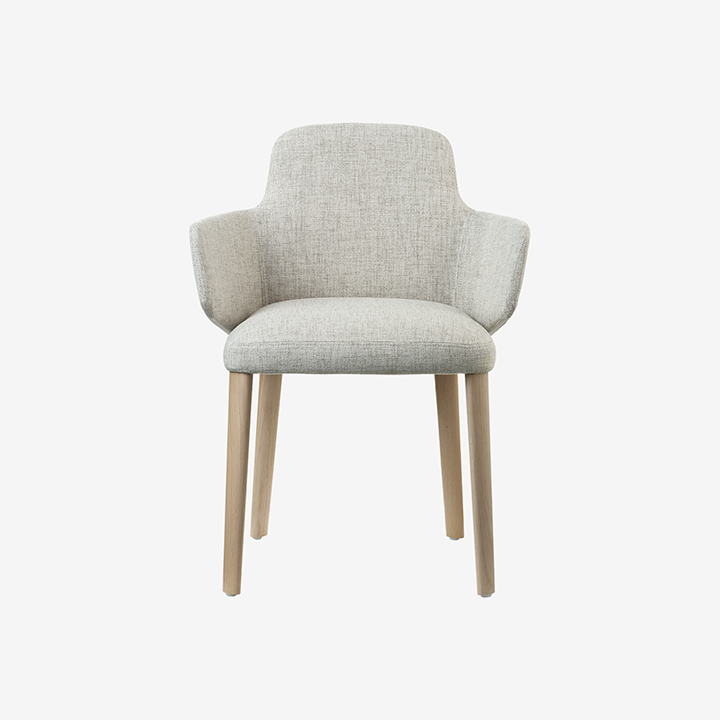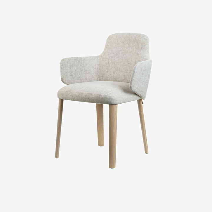 De Lei eetkamerstoel met armleuning combineert modern design met ultiem zitcomfort. Met zijn uitnodigende armleuningen en omhullende rondingen nodigt deze stoel uit tot lange, gezellige diners. De Lei is te personaliseren door keuze uit vele kleuren en dessins van zowel stof als leer en diverse soorten en kleuren hout.