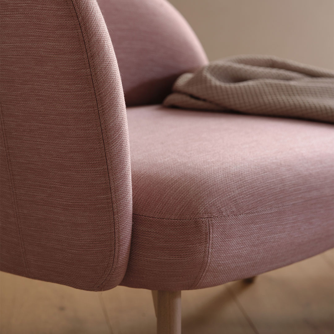 Compacte lounge chair die comfort uitstraalt. Verkrijgbaar met de leuning links of rechts en in in vele kleuren en dessins.