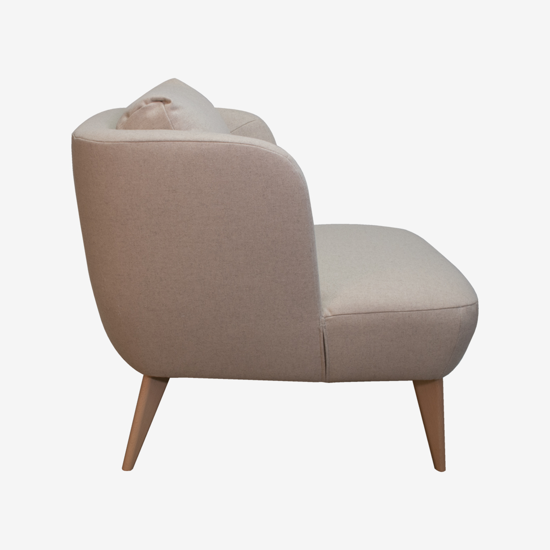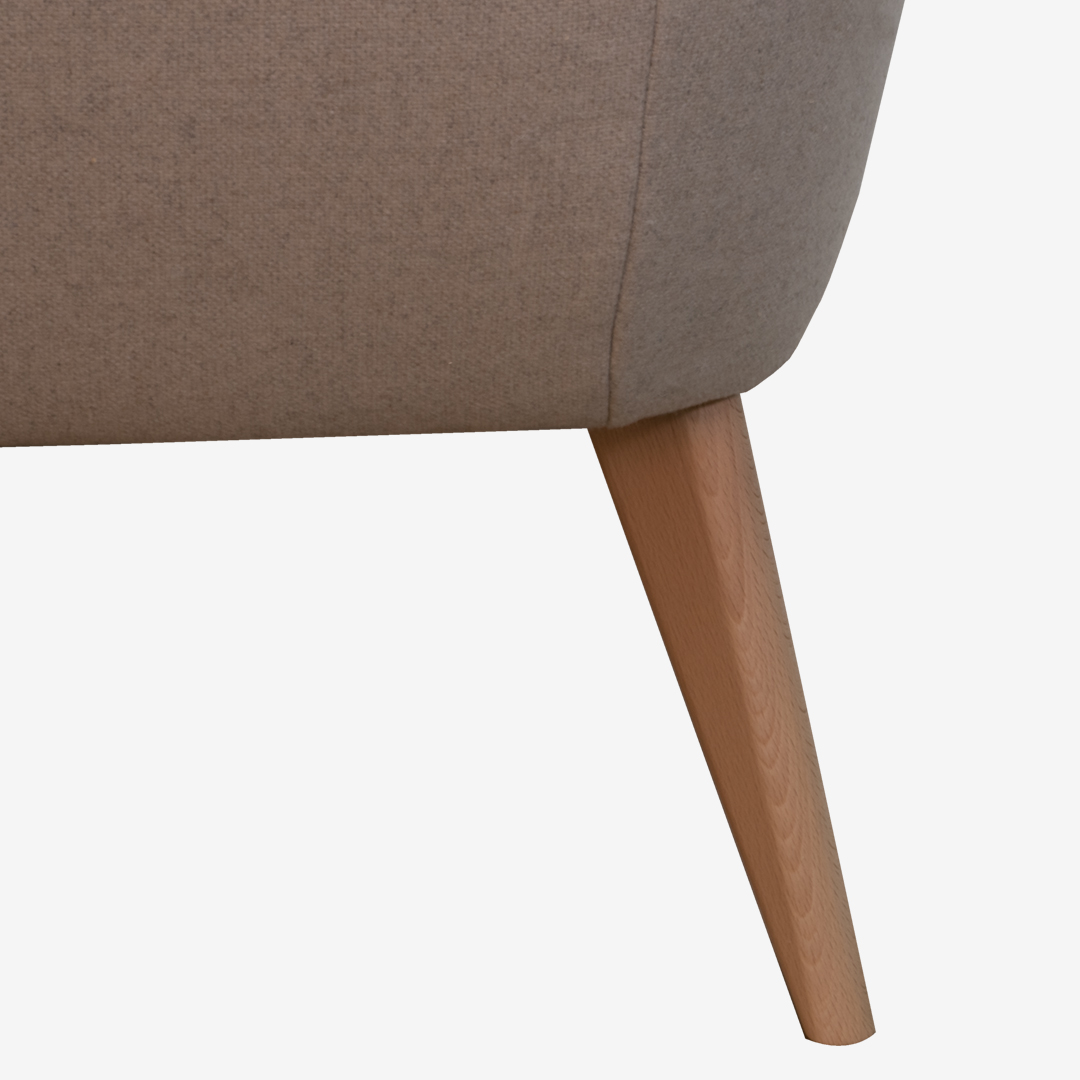 Moderne fauteuil op eikenhouten poten. Een fijne aanvulling voor de woonkamer.