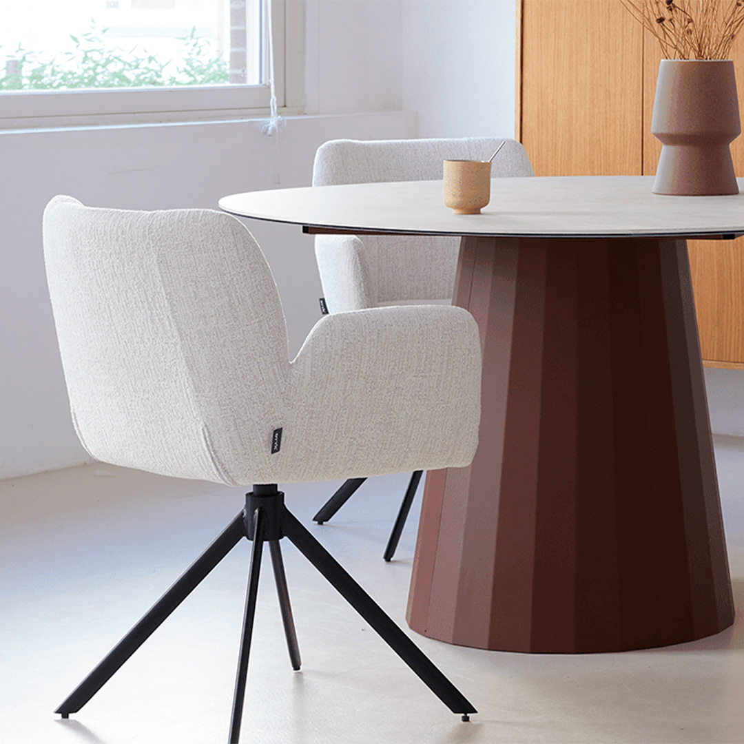 Een combinatie van een frivole uitstraling en een fijne afwerking, dat is eetkamerstoel Falco. Alles in dit model is gericht op een fijne zitervaring. Deze comfortable eetkamerstoel op draaivoet met autoreturn-functie is verkrijgbaar in een groot aantal stofsoorten en kleuren.