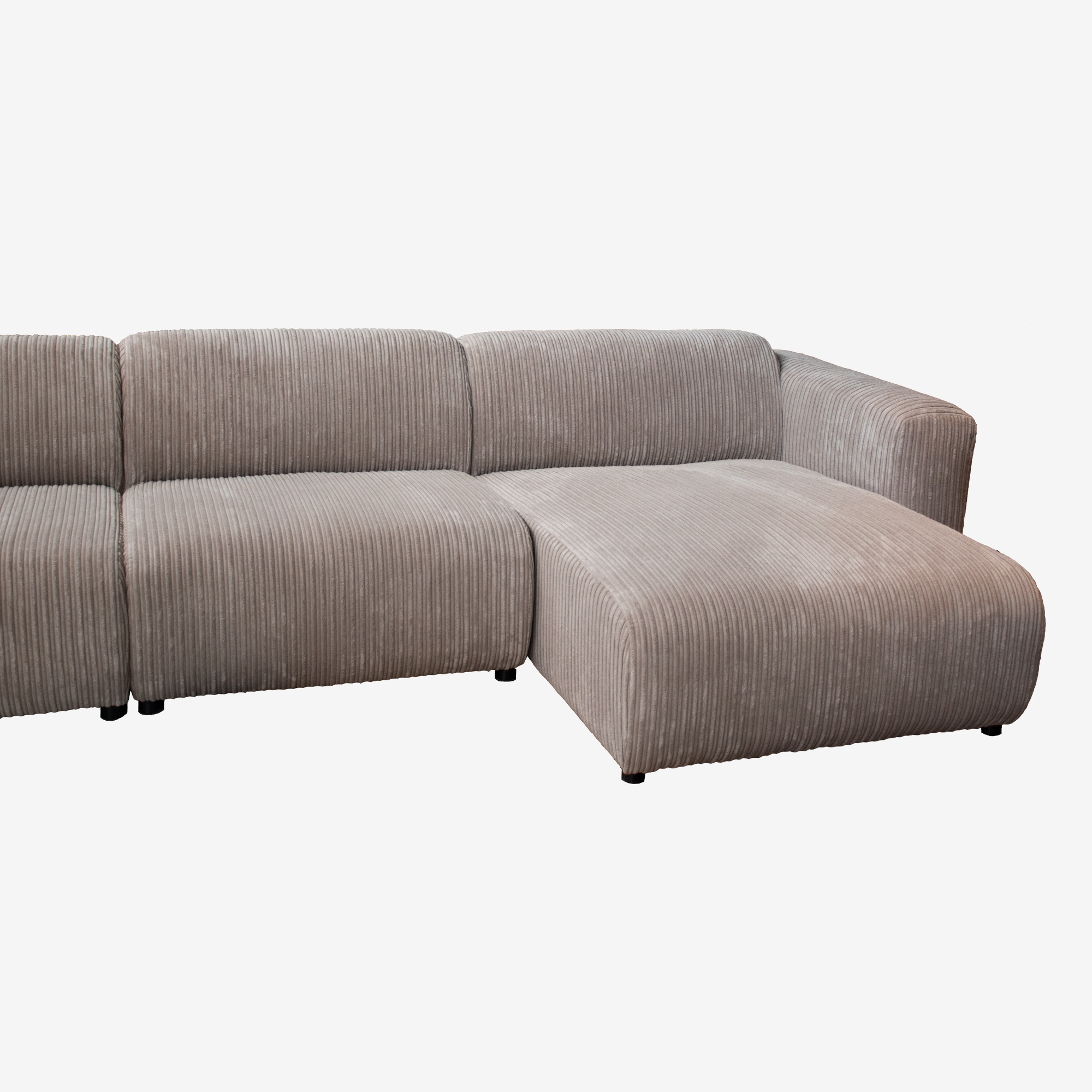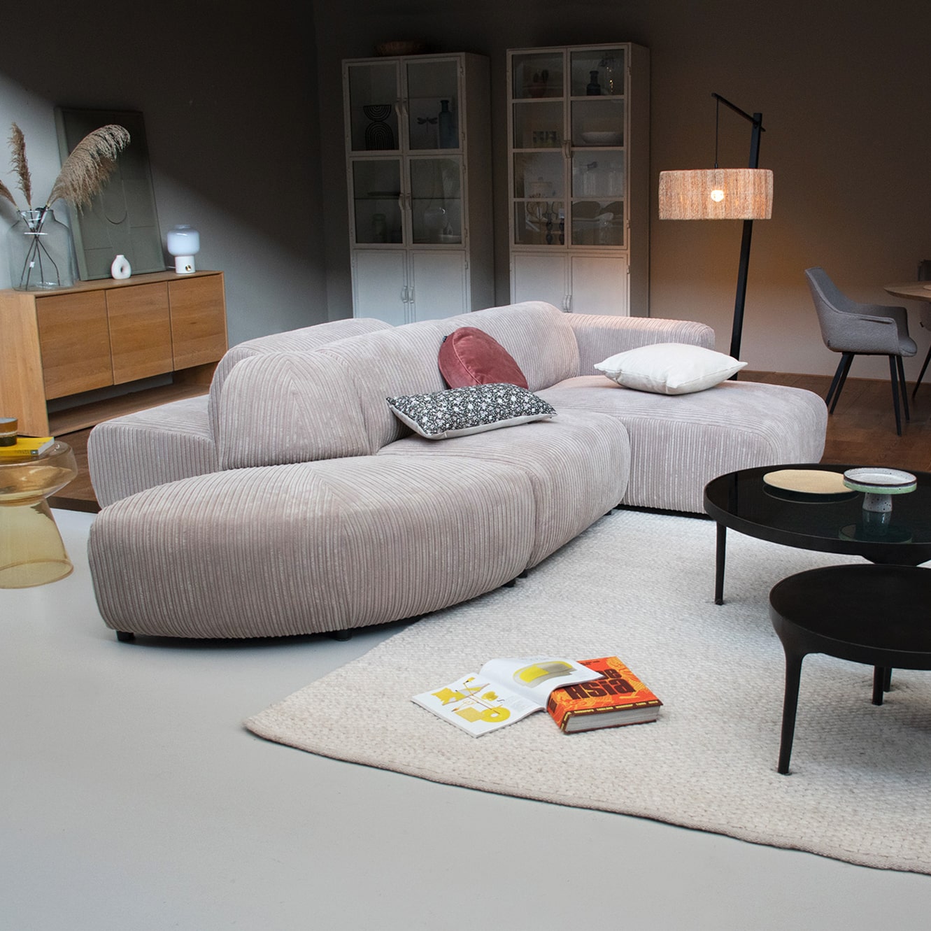 Maak een style-statement in de woonkamer met de prachtige elementenbank Harper. Speel met de elementen en stel zelf jouw hoekbank, bankeneiland, 4-zits- of 3-zits bank samen met je favoriete stof en kleur. Nu in de aanbieding: showmodel bestaande uit een divan van 120 cm. breed, 2 kwart elementen rond en 2 1,5-zits elementen zonder armleuning bekleed in de stof Corduroy Mink 1221. Vraag van tevoren naar de beschikbaarheid.